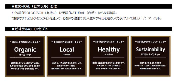 オーガニック市場の拡大を背景に、お客様のご要望にお応えした品ぞろえとサービスをご提供するため、ビオラル靭店(大阪市西区)やビオラル丸井吉祥寺店(東京都武蔵野市)をはじめ、ライフ各店舗でのBIO(ビオ)-RAL(ラル)商品の販売も拡大しております。