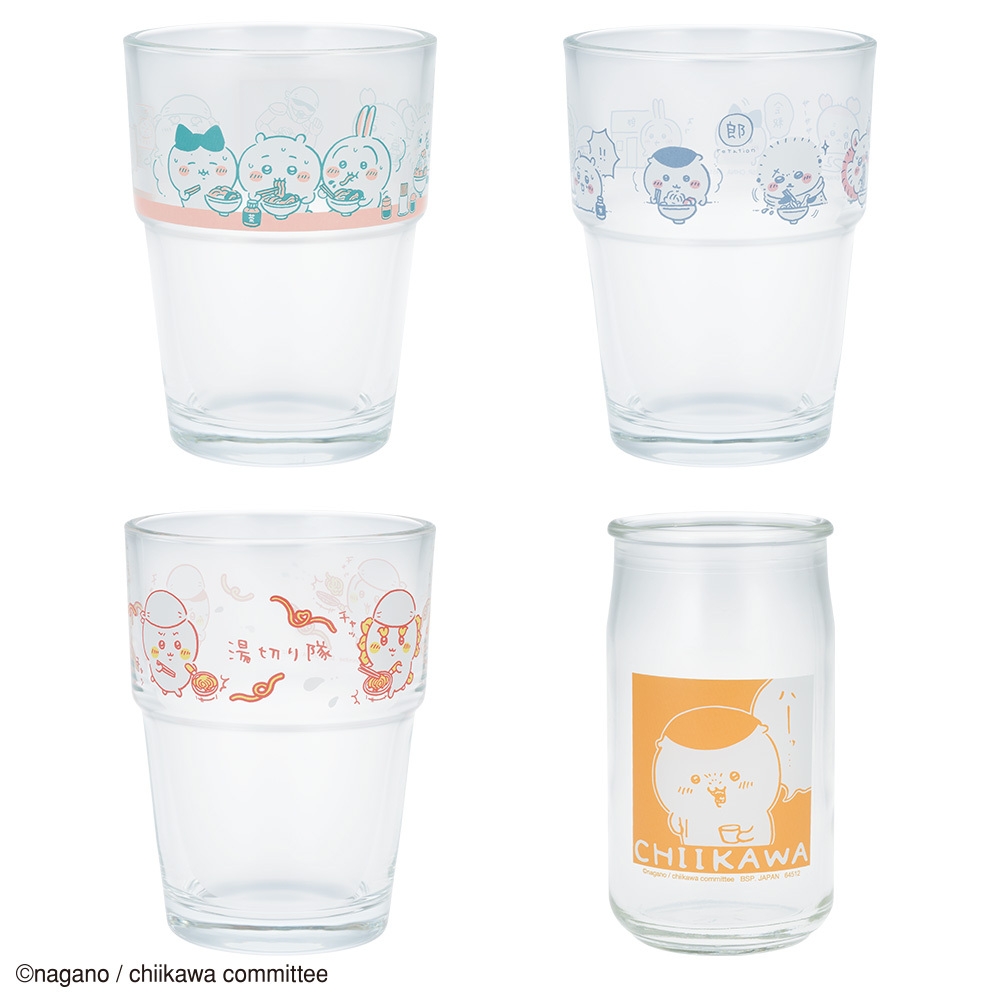 A賞はセットした時間になると、ちいかわたちがおしゃべりで教えてくれるヌードルタイマー。フィギュアの後ろにカップ麺を置くスペースもあります。お好きな時間をセットできるのでタイマーとして日常生活で活躍します。B賞からD賞はちいかわ、ハチワレ、うさぎのボリューム感あるフィギュア。E賞はおうちで「郎」のラーメン気分に浸れる、お冷風のグラスとカップです。