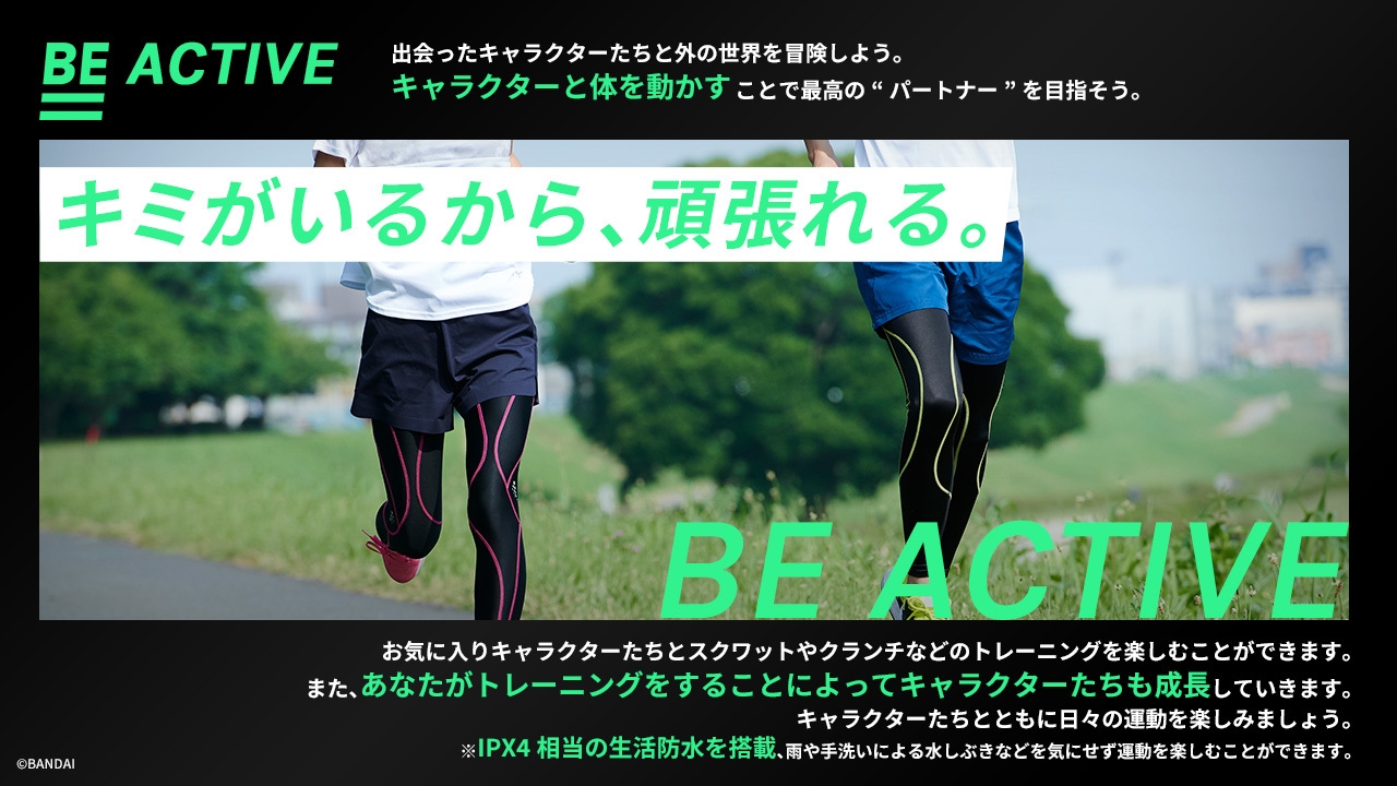 本商品は歩くことで様々な人気キャラクターたちと出会うことができ、運動を通してキャラクターの育成を楽しむことができるガジェットトイです。また、別売りの連動アイテム「BEメモリ」を本体に使用することで、お気に入りのキャラクターたちとともに毎日の生活を楽しむことができます。(発売元:株式会社バンダイ)