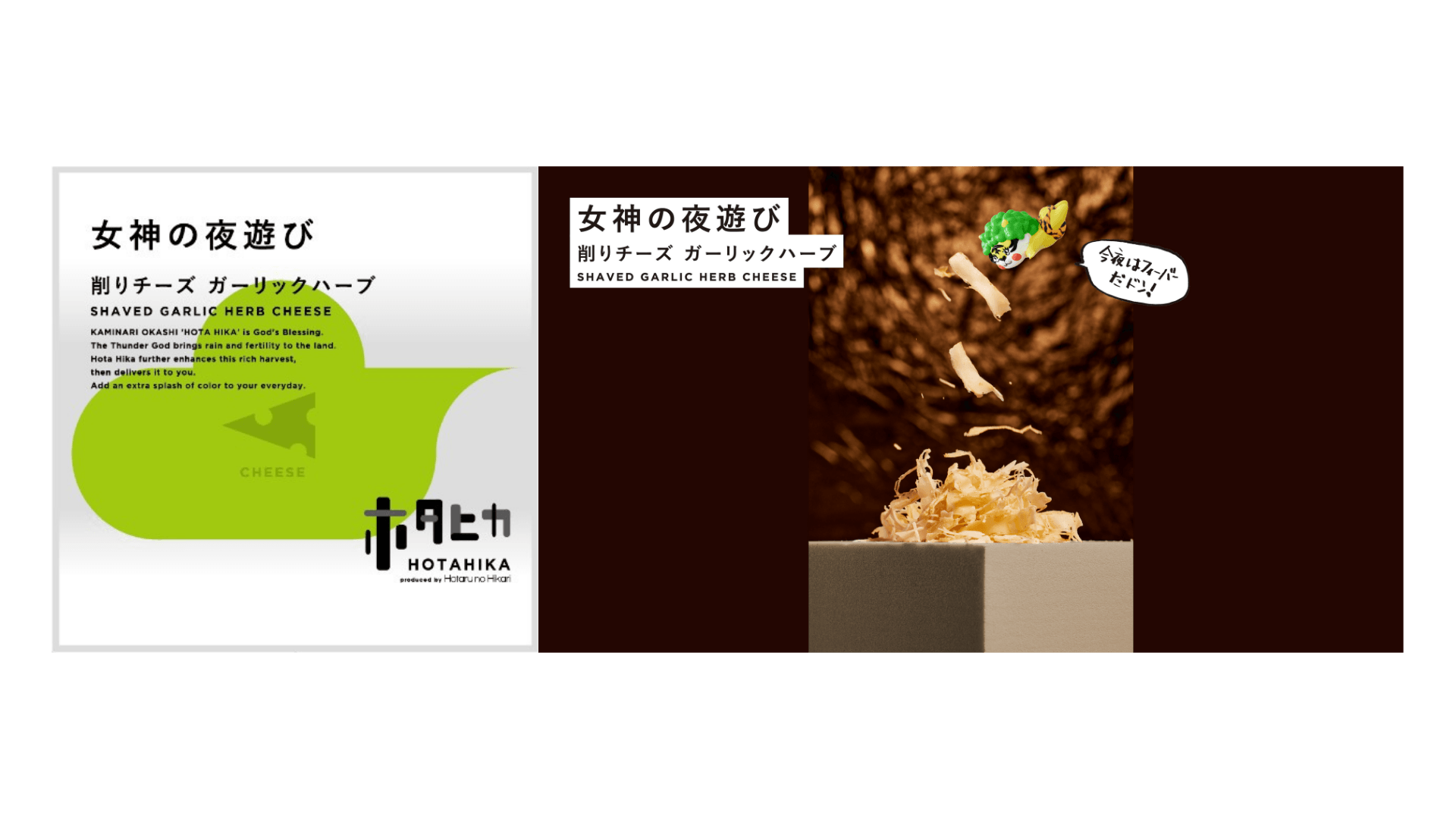 2024年4月23日(火)より販売開始予定の『ホタヒカ』は、製法にこだわり厳選された素材の味を引き出す同店の監修のもと、新たに立ち上げた「ネオ珍味」ブランドです。全12種類で構成されており、シリーズのイメージキャラクターとして大地に雨と実りをもたらす豊穣の神である「カミナリ様」を採用。それぞれの食材にインスパイアされた独自のおつまみ観のもと、イマジネーションの翼が広がるままに充実のラインナップを造り上げました。こだわりのネーミングと気軽に持ち歩けるシンプル&ミニマルなデザインでパッケージされた『ホタヒカ』は、場所を選ばず毎日を彩る「ふだんのご褒美」としてイチ推しです。