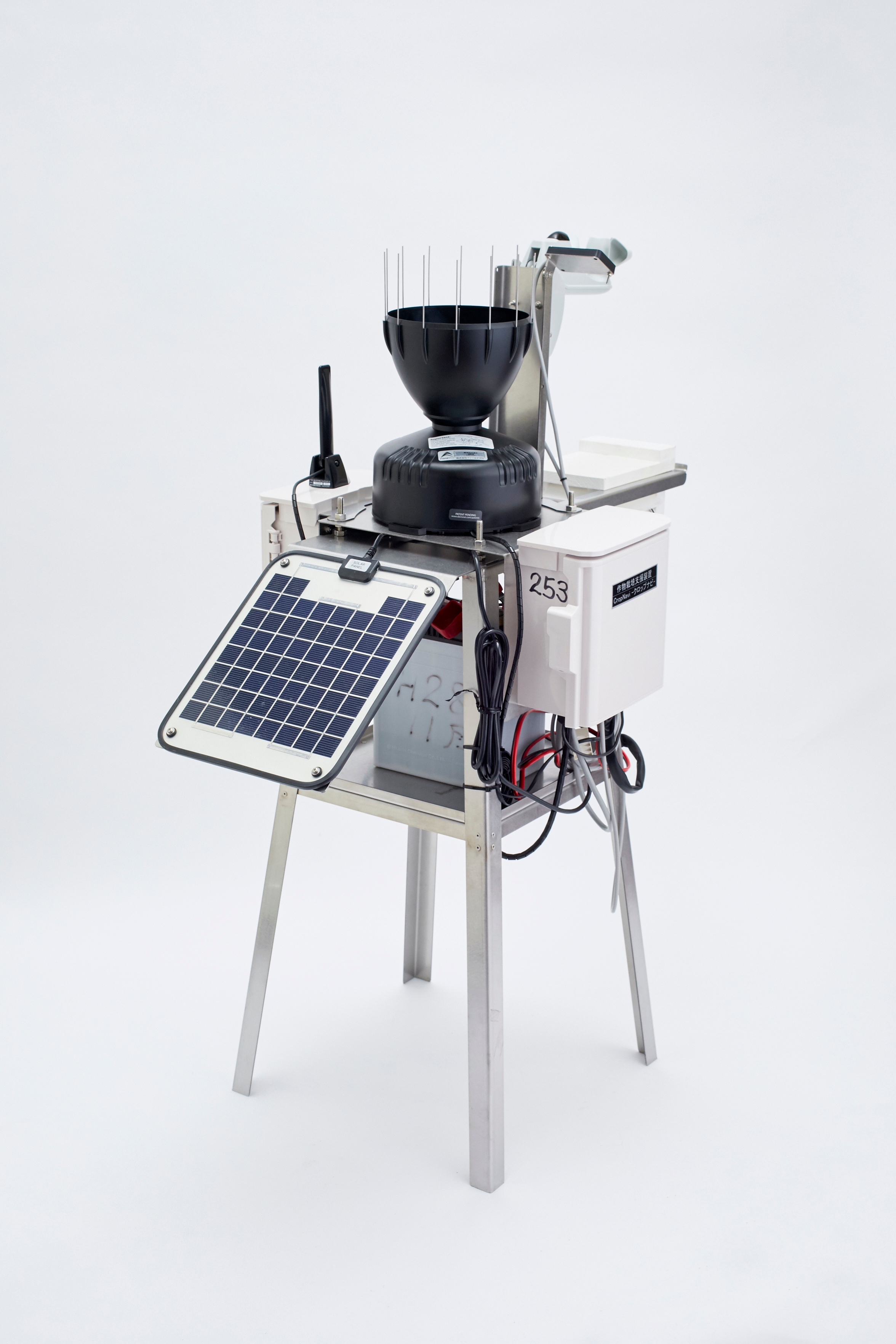 標準搭載 :雨量計、葉濡れセンサ、温度計、ミニ百葉箱、風力陽光センサ、