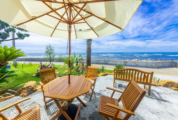 メタケイ酸、硫酸イオン、炭化水素イオンなど、美肌効果のある成分を多く含んだ温泉です。露天風呂の壺湯では、波の音を聞きながら満天の星空をお楽しみいただけます。