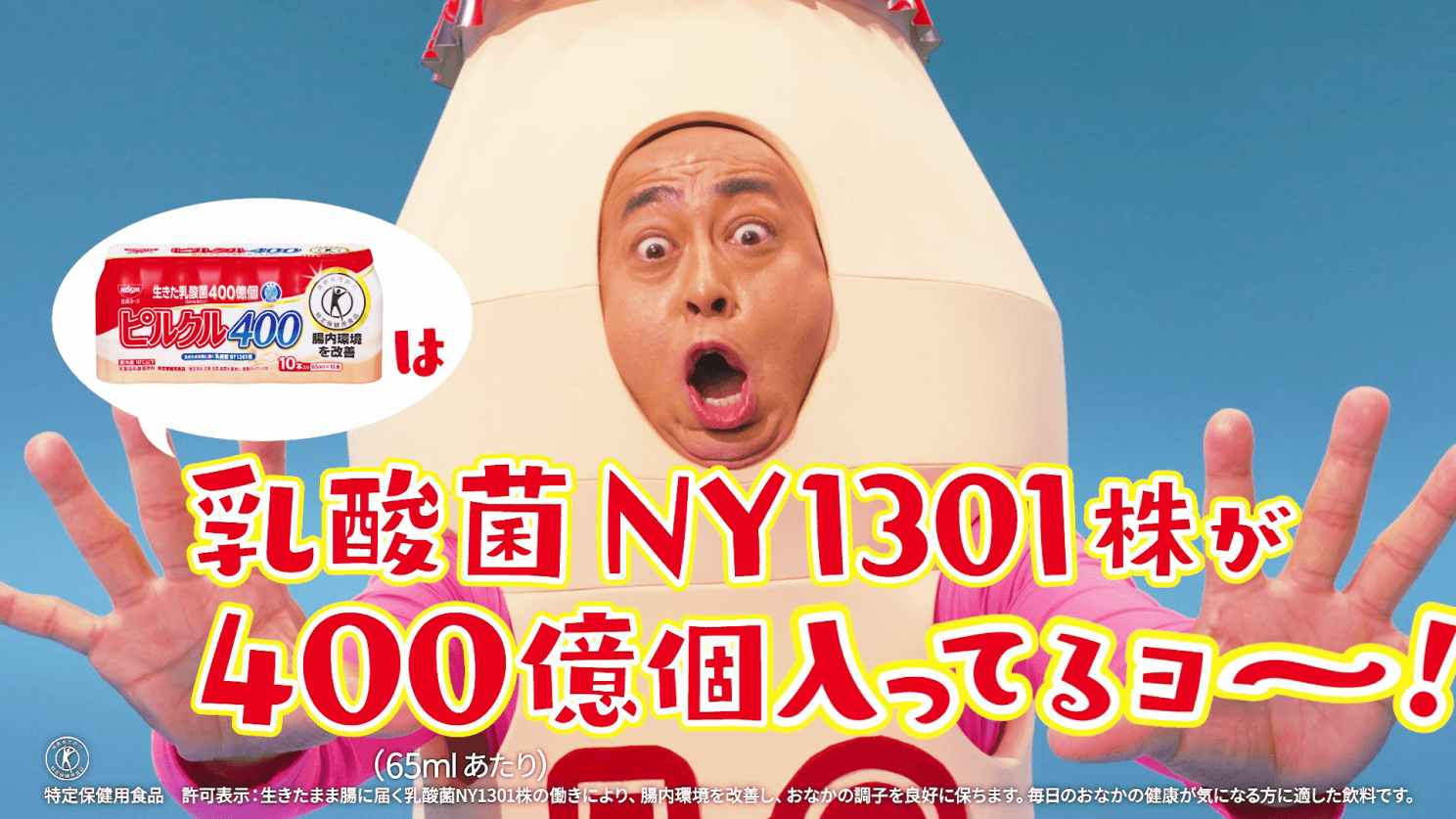 ピルクル400は、生きたまま腸に届く乳酸菌NY1301株が400億個 (65mlあたり) 含まれた特定保健用食品です。