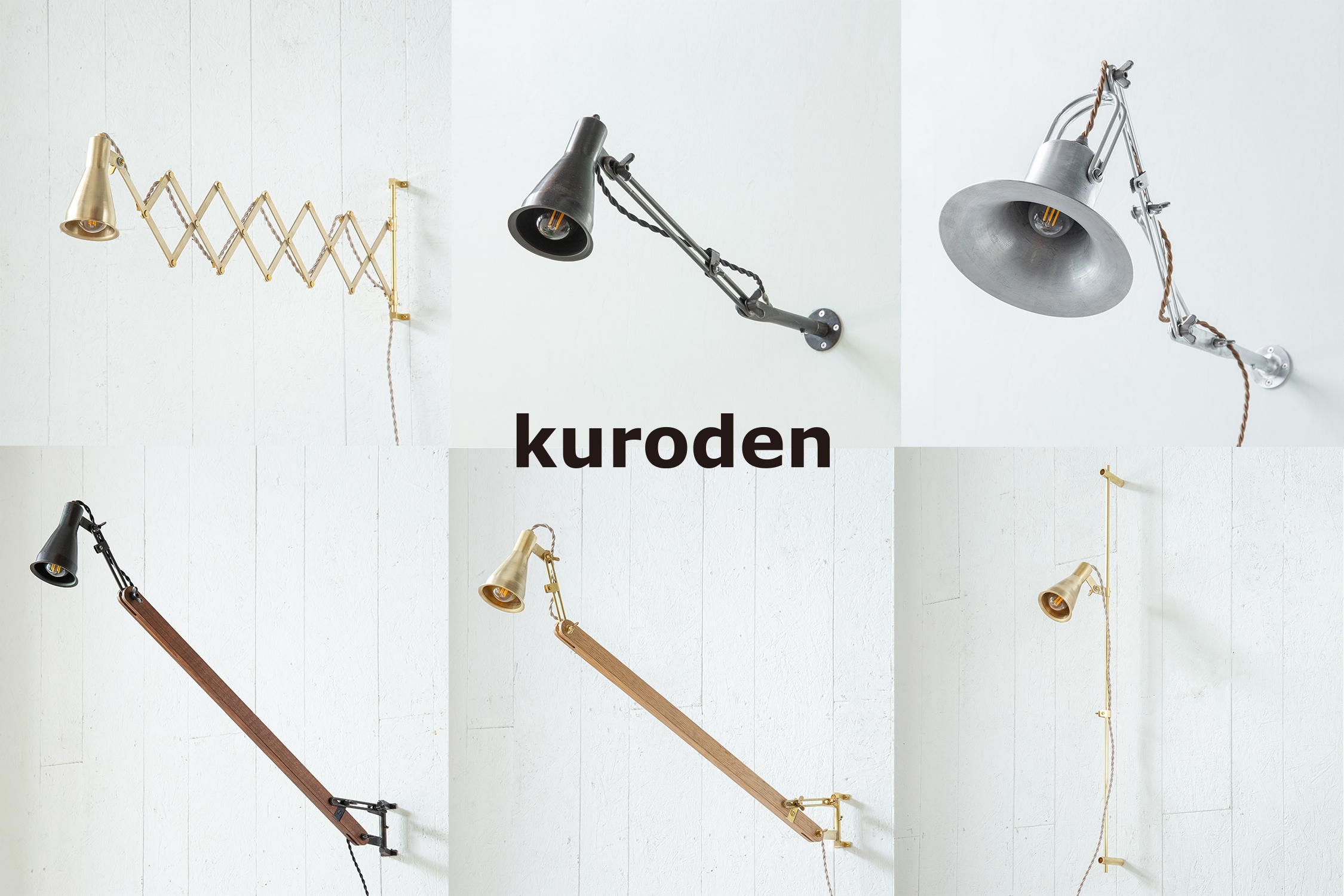 工場の隅の窯の中で焼けて黒く酸化した鉄のセードが「kuroden」のはじまり。このたび、形や使い方を見直してリニューアルしました。<部品×部材×素材>をテーマに掲げ、オリジナルパーツを多数追加。パーツの組み合わせで異なるシチュエーションにも対応できるフレキシブルな照明。用途を固定してしまうのではなく、その時々のシーンや空間に合わせて柔軟に変化する、いわば“未完成な照明”。ホテルや商業施設に適した、様々な場所でのライン使いもご提案します。