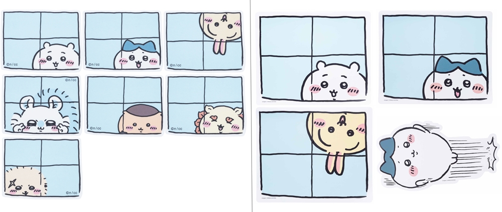 左)スマホに貼れるサイズのクリアステッカー 7種 各330円(税込)