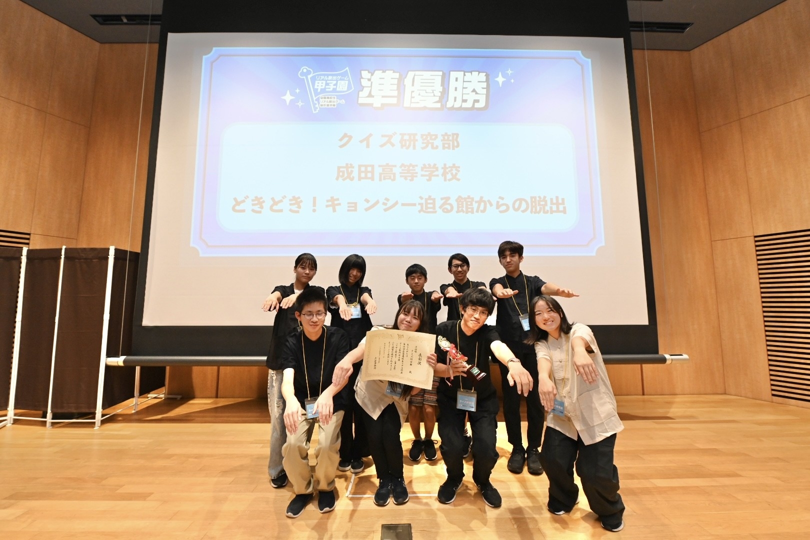 準優勝は、成田高等学校の「クイズ研究部」が受賞。「クイズ研究部」が制作した『どきどき!キョンシー迫る館からの脱出』は、SCRAP代表加藤からのコメント「目の前にいる人を楽しませたいという気持ちが一番伝わった。セリフ、音楽、演出すべてがよかった。」にもあるように、特に演出面での高い評価を獲得しました。