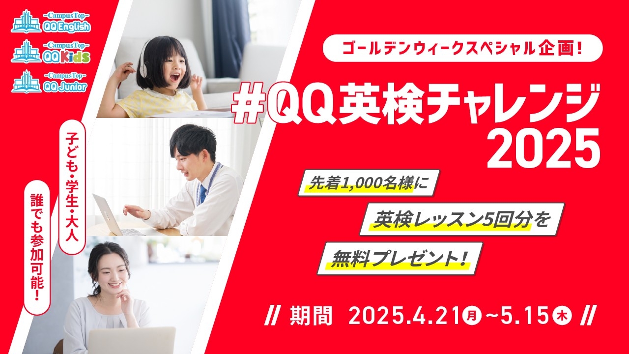 株式会社QQEnglish(本社:東京都渋谷区、代表取締役:藤岡頼光)は、2025年度第1回実用英語技能検定(英検®)の受験者を対象に、英検®対策レッスンチケット5枚を先着1,000名様にプレゼントをする「QQ英検®チャレンジ2025」キャンペーンを実施いたします。