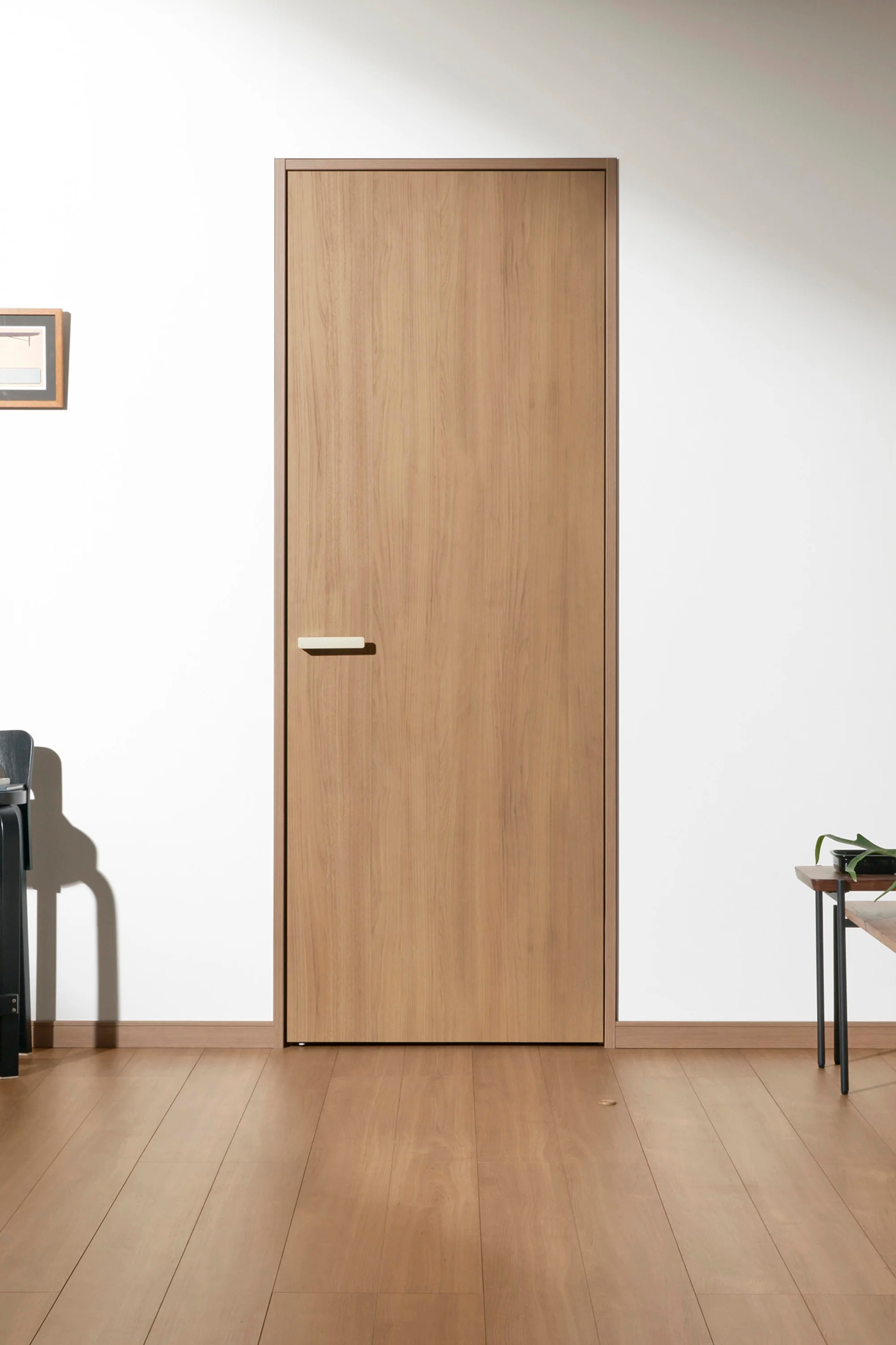 凹凸感のない納まりでドアがすっきりと見え、シンプルなフォルムに。