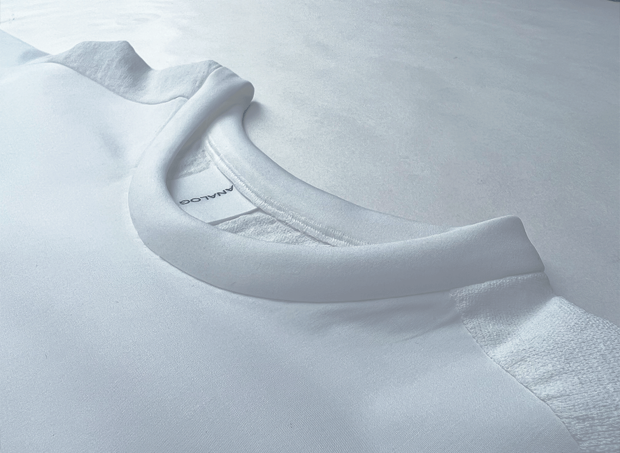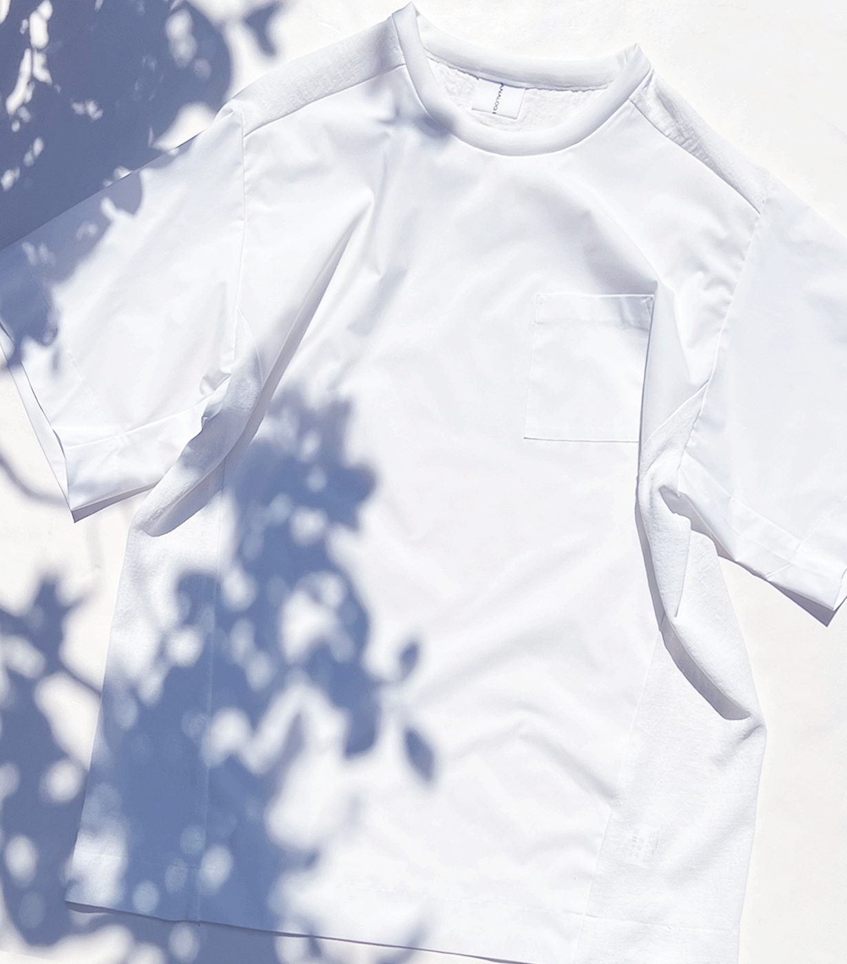 白Tシャツは誕生から100年間、殆ど進化していません。それに比べ地球環境は温暖化など大きく変化しています。そんな状況を踏まえて、この道45年の縫製職人さんと、25年のデザイナ一が「この猛暑を軽減する洋服をつくり、エアコンに頼りすぎない暮らしをつくる」と今までの経験と知識を集結して一緒に制作しました。