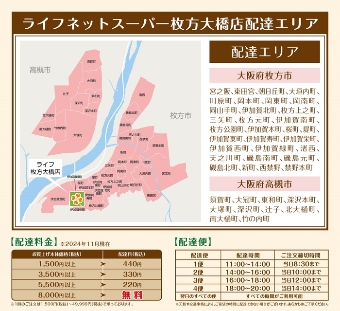“おいしい” “ワクワク” “ハッピー” をお届けするライフコーポレーションは、2月26日(水)より枚方大橋店で「ライフネットスーパー」のサービスを開始しました。
