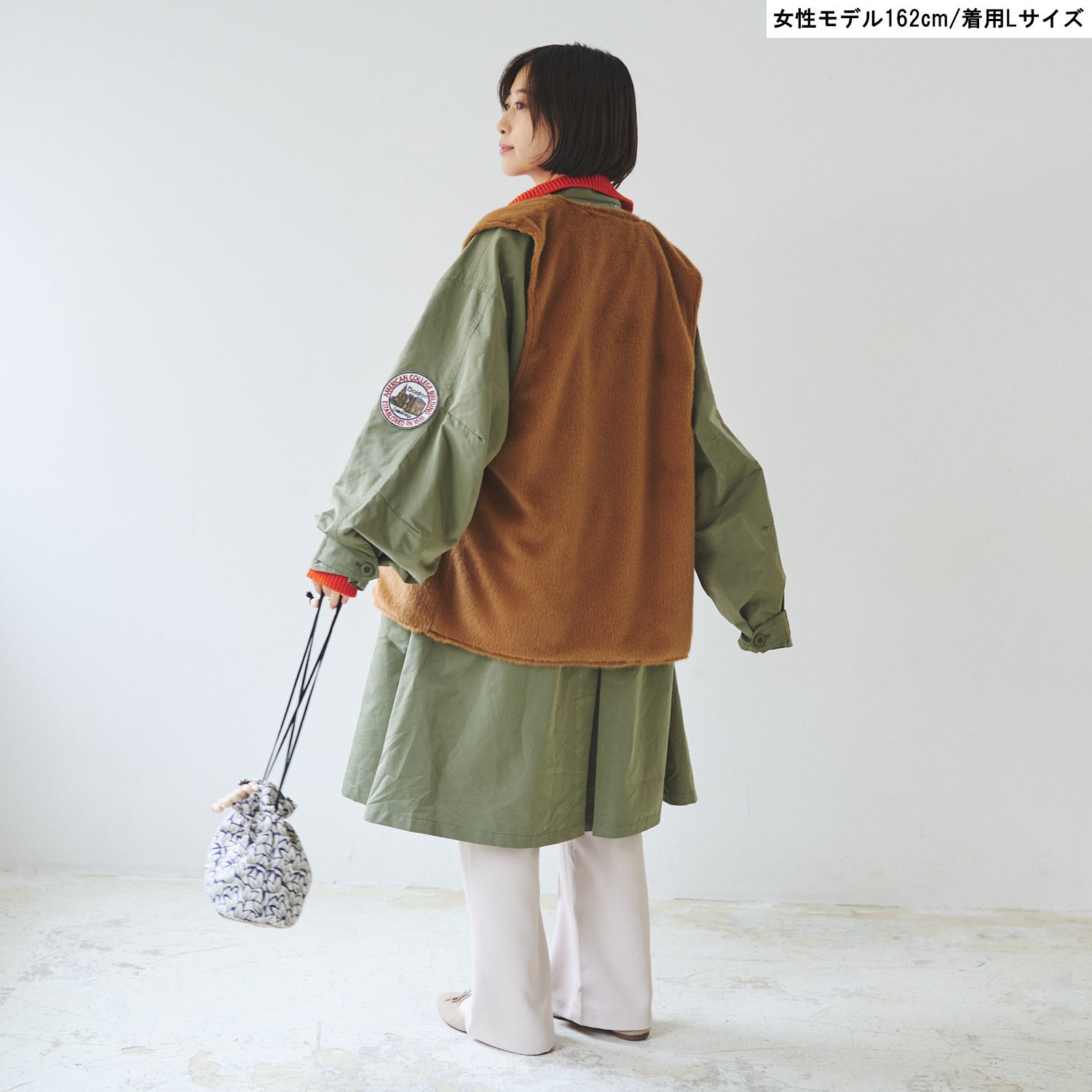 ベスト、モッズコートそれぞれ単品での着用はもちろん、モッズコートの上からベストを着用したレイヤードスタイルと、モッズコートの内側にベストを取り付けるスタイルの4WAY仕様。
