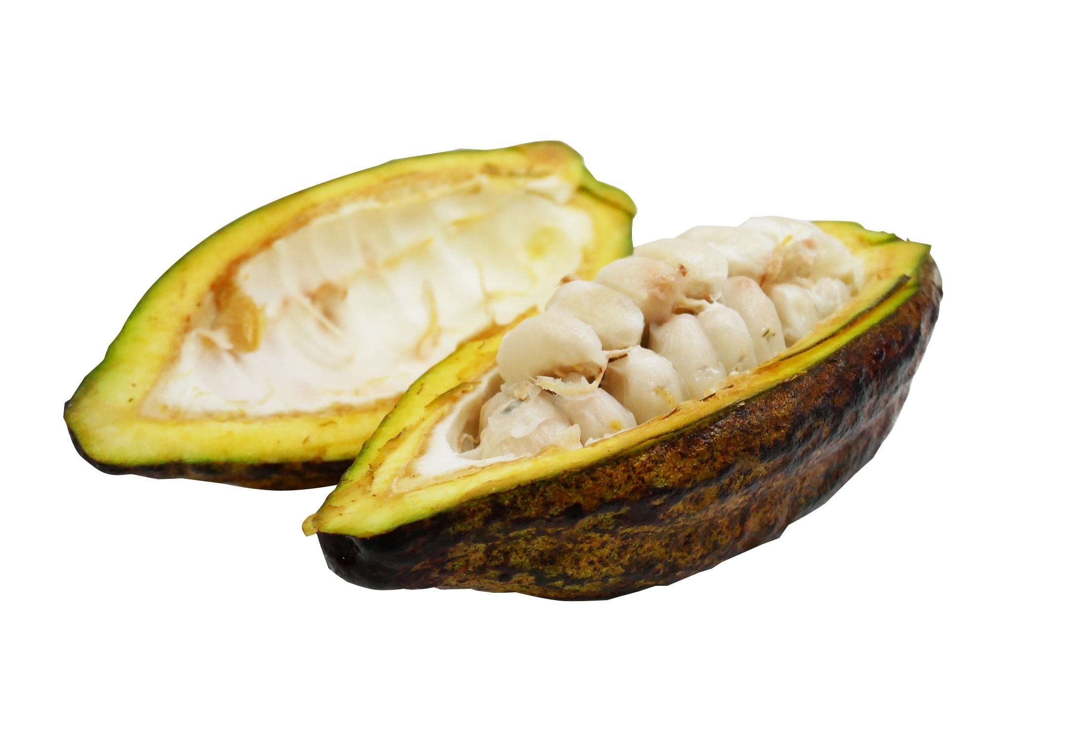 チョコレートの原料であるカカオは、フルーツの一種です。カカオの実のことをカカオポッドといい、カカオパルプは豆を覆っている白い部分(カカオの果肉)を指します。ライチやバナナなどトロピカル系のフルーツのような風味が特徴。カカオパルプはカカオポッドから約7%程度しかとれない貴重な素材で、通常はカカオ豆の発酵工程で分解されてしまいます。そのパルプをピューレにし、さらに粉末にしてチョコレートに加えました。砂糖の代わりにパルプパウダーを使用することで、カカオの味わいを存分に楽しめるチョコレートです。