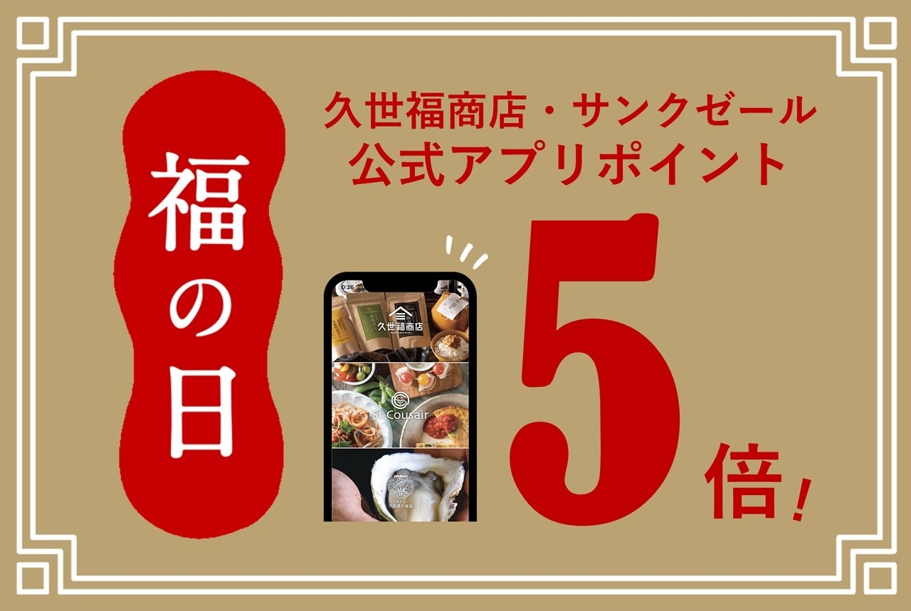 株式会社サンクゼールは2025年3月29日(土)から3月30日(日)までの2日間、「久世福商店・サンクゼール公式アプリ」のポイント5倍キャンペーンを実施いたします。
