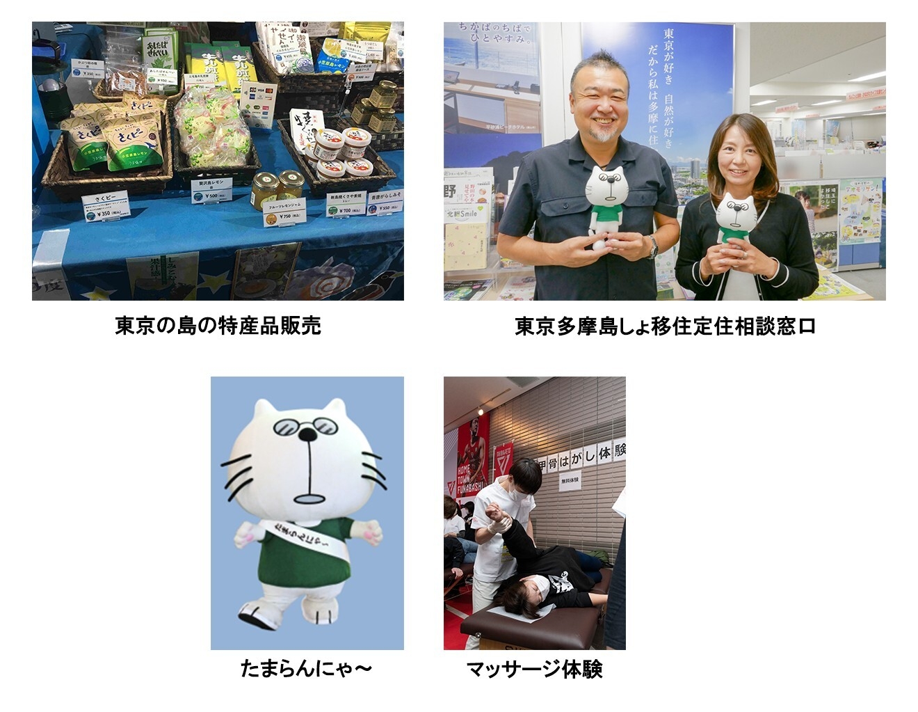 東京の観光情報をはじめ、東京の島の特産品販売、グルメ、カフェ、スイーツなどの東京の食材を使ったキッチンカー、全国柔道整復師連合会によるマッサージ体験など盛りだくさんのブースを展開します。