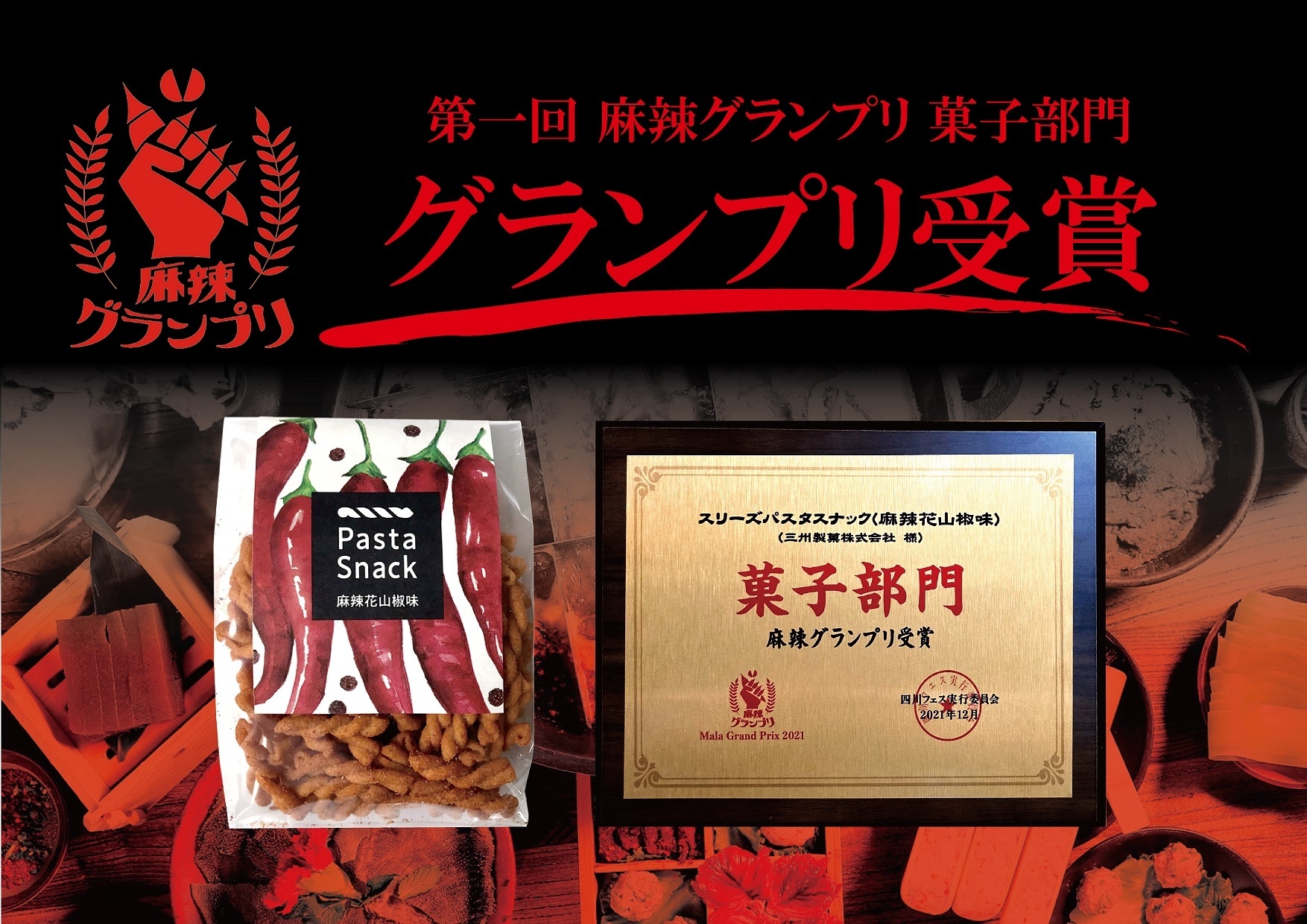 辛いもの好き必食!三州製菓の人気おつまみスナック 『スリーズパスタスナック 麻辣花山椒味』が 「第1回 麻辣グランプリ」菓子部門 グランプリを受賞!