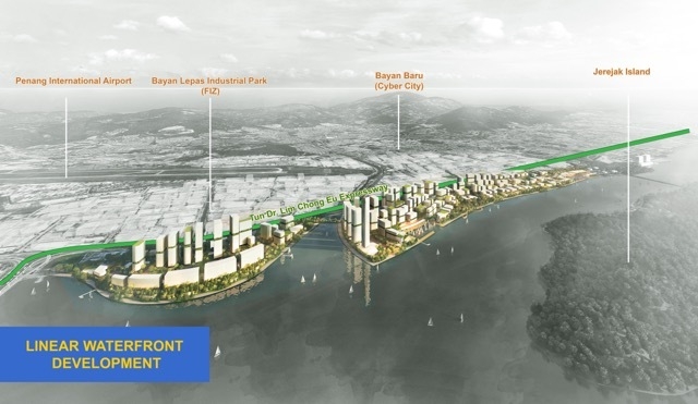 総額98億6,000万リンギットの埋立事業。GBS地区、交通ハブ、サービスアパートメント、ビジネスホテル、ライフスタイルモールを備えた8kmに及ぶ海沿いの新ランドマークを建設。