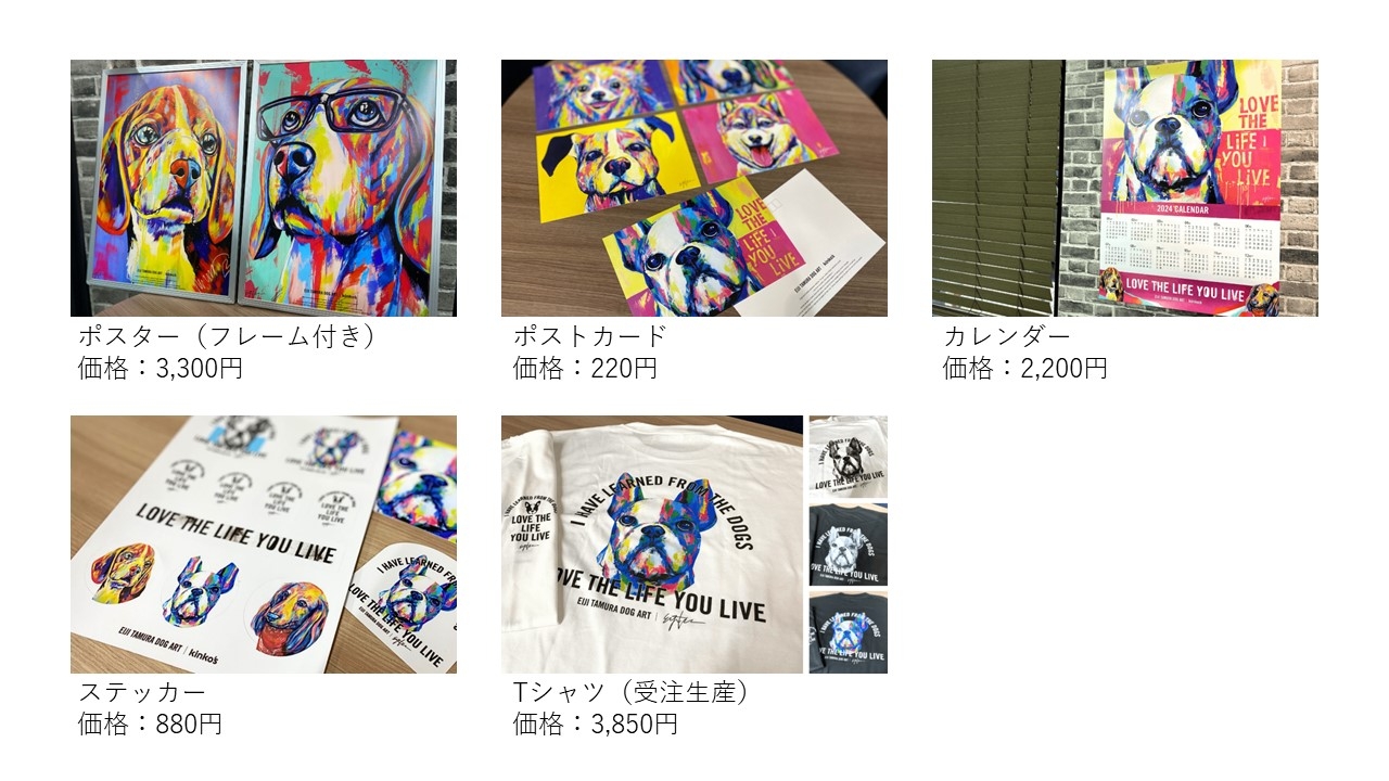 キンコーズ・ジャパン株式会社(本社:東京都港区、代表取締役社長:渡辺 浩基、以下 キンコーズ)は、キンコーズ・渋谷店にて、2023年11月3日(金・祝)~30日(木)まで、ポップなカラーの犬を描くドッグアーティスト(犬絵画・画家)、タムラエイジ氏の「LOVE THE LIFE YOU LIVE」展を開催。店内を装飾でジャックし、原画の展示やキンコーズでしか手に入らないグッズの販売も実施中。