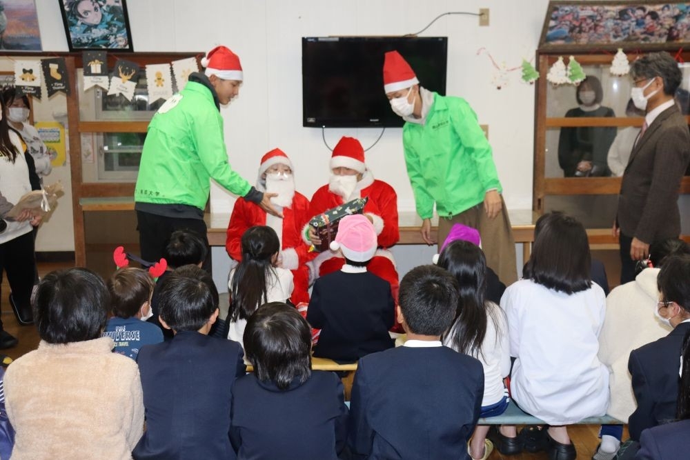 サンタに扮した経営学部3年、真鍋大暉さんは「子どもたちが喜ぶ顔を見てうれしかった。これからも子どもたちが喜ぶような活動を続けていきたい」と晴れやかな表情で話していました。