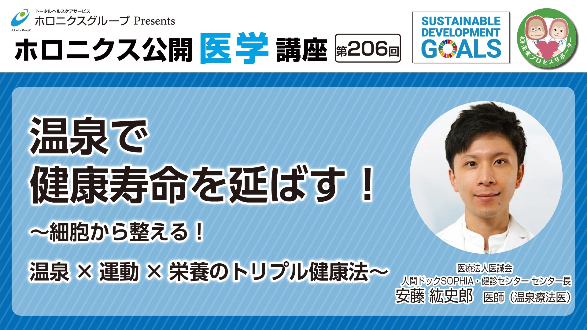 動画公開『温泉で健康寿命を延ばす!〜細胞から整える!温泉×運動×栄養のトリプル健康法〜』/第206回ホロニクス公開医学講座