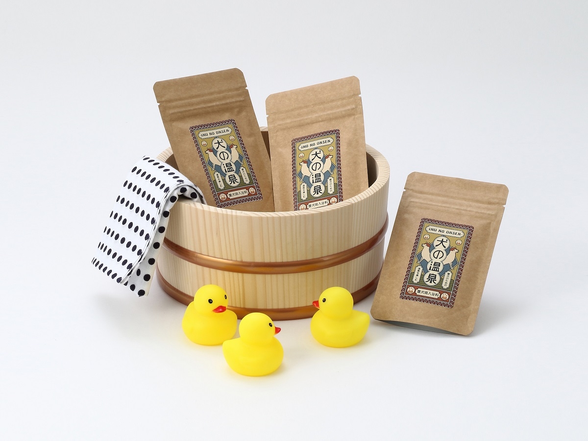 ➁わんちゃん用お風呂セットプレゼント(犬の温泉+アヒル隊長+手ぬぐい)
