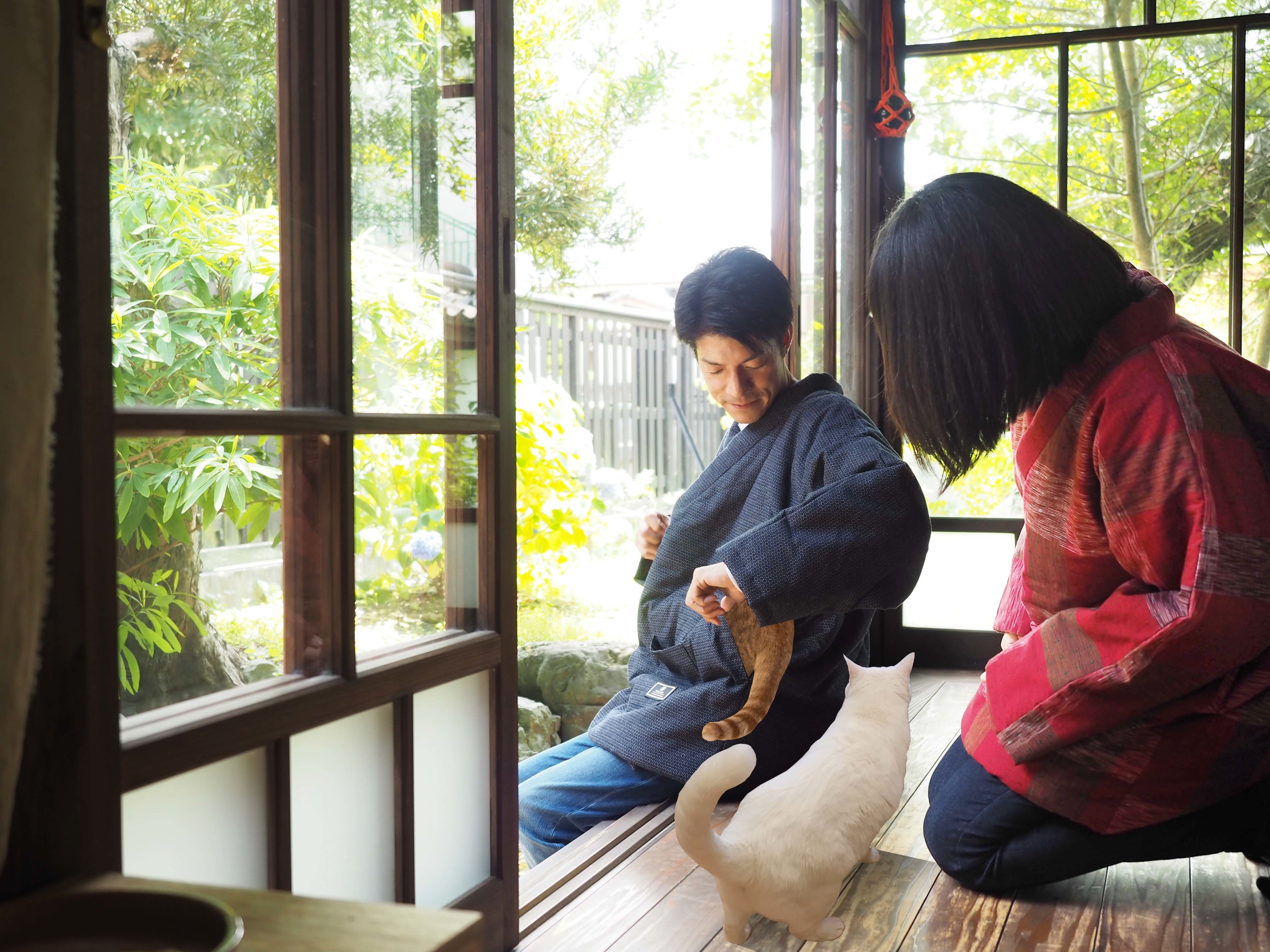 そしてようやく完成したサンプルを、今度は実際に自宅で猫達と試します。サイズや丈の長さ、猫が入るポケットの位置などを細かく調整。そしてこの夏。遂に納得できる「ねん猫はんてん」が完成したのです。