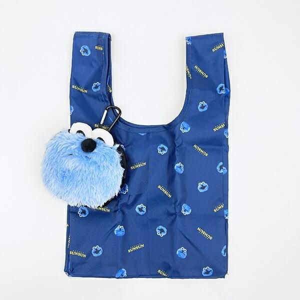 最後にご紹介するパペットスンスンのアイテムは、ふわもこのポーチ付きエコバッグです。