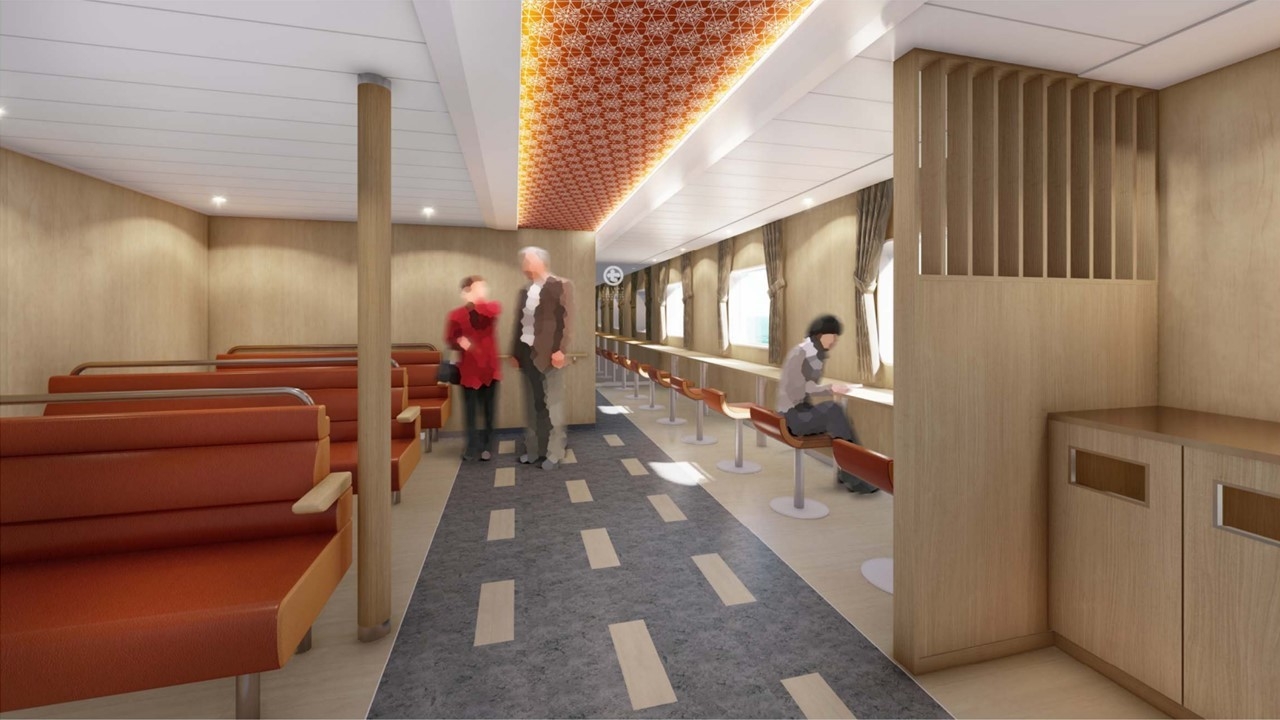 メイドイン函館の新造船であることから、函館市にゆかりのあるモノ(五稜郭、おんこの木など)をグラフィック化したデザインとなっており、空間のオリジナリティを演出し青函フェリーであるというイメージを明確に表現しております。