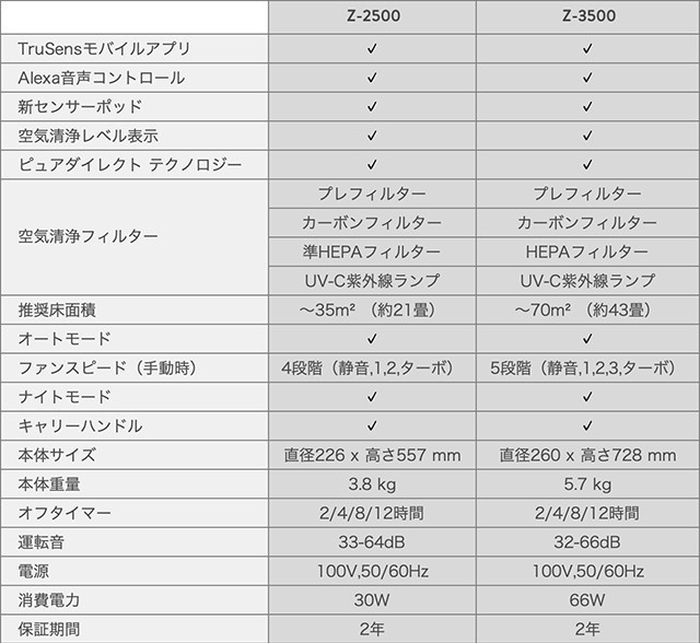 名称 : TruSens 空気清浄機 Z-3500