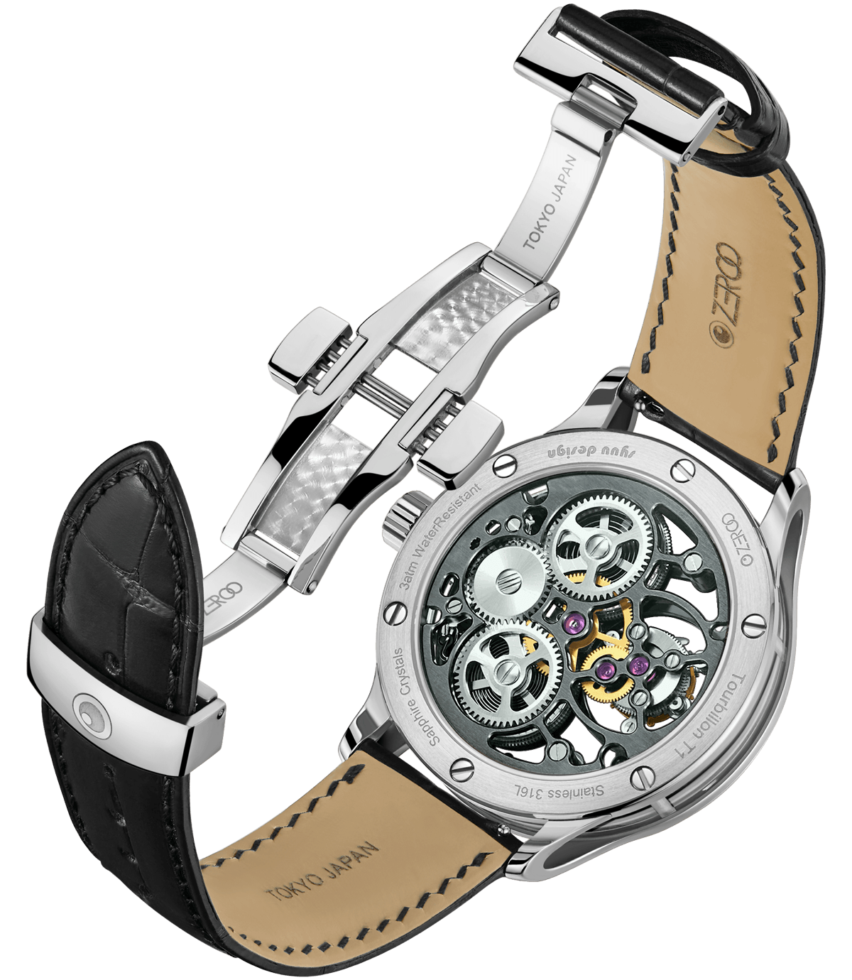 「ゼロから時計を再構築する」モダンと古典の融合を得意とするゼロタイム株式会社から、再び、フルスケルトントゥールビヨンがローンチされました。前面、裏面、側面、全方向からトゥールビヨン・ムーブメントの精緻な動きを心ゆくまで堪能できるこれまでになかった腕時計です。