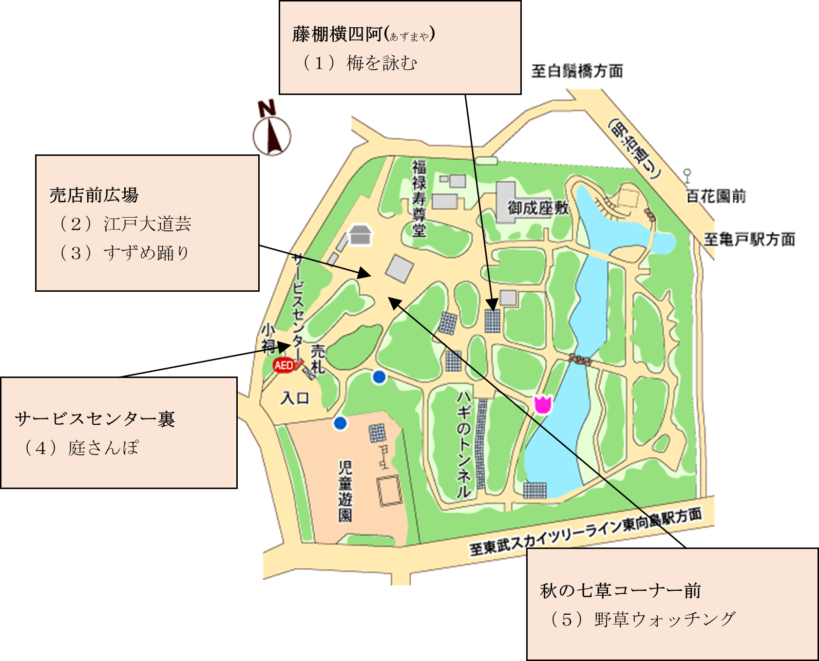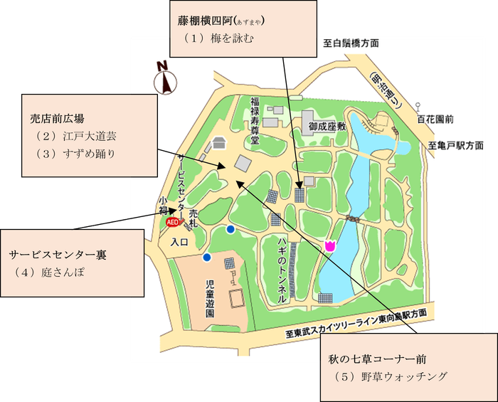 ※庭園ガイドについては、気象状況等により実施を中止する場合があります。当日の実施については、向島百花園サービスセンターにお問合せください。