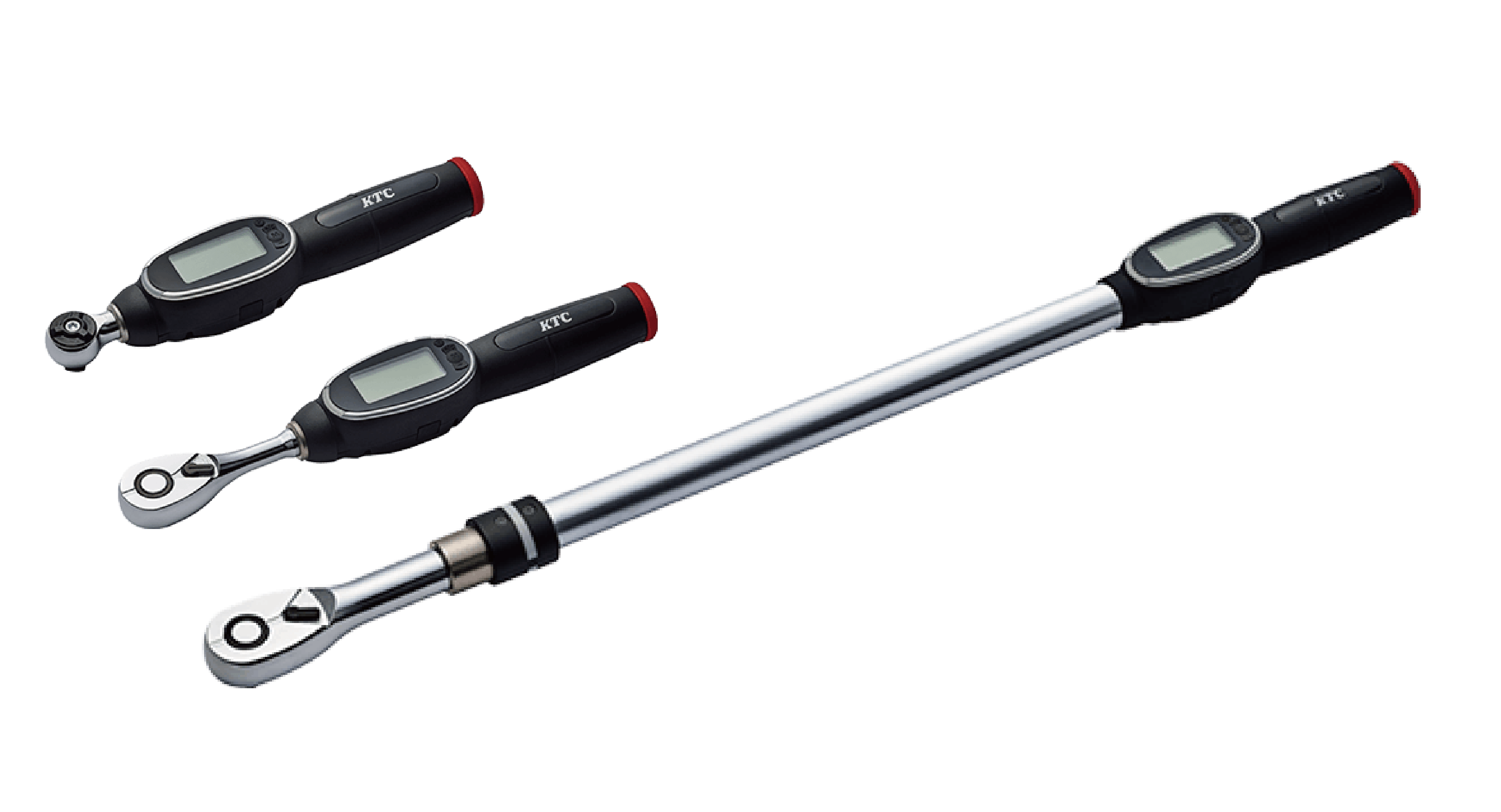 デジラチェは、光と音に加え振動でも目標トルク値に達したことを伝え、正確なトルク測定ができるデジタル式トルクレンチです。トルク値が一目でわかる3個所のLEDライトと、暗い環境でも作業しやすいバックライトを新たに搭載。