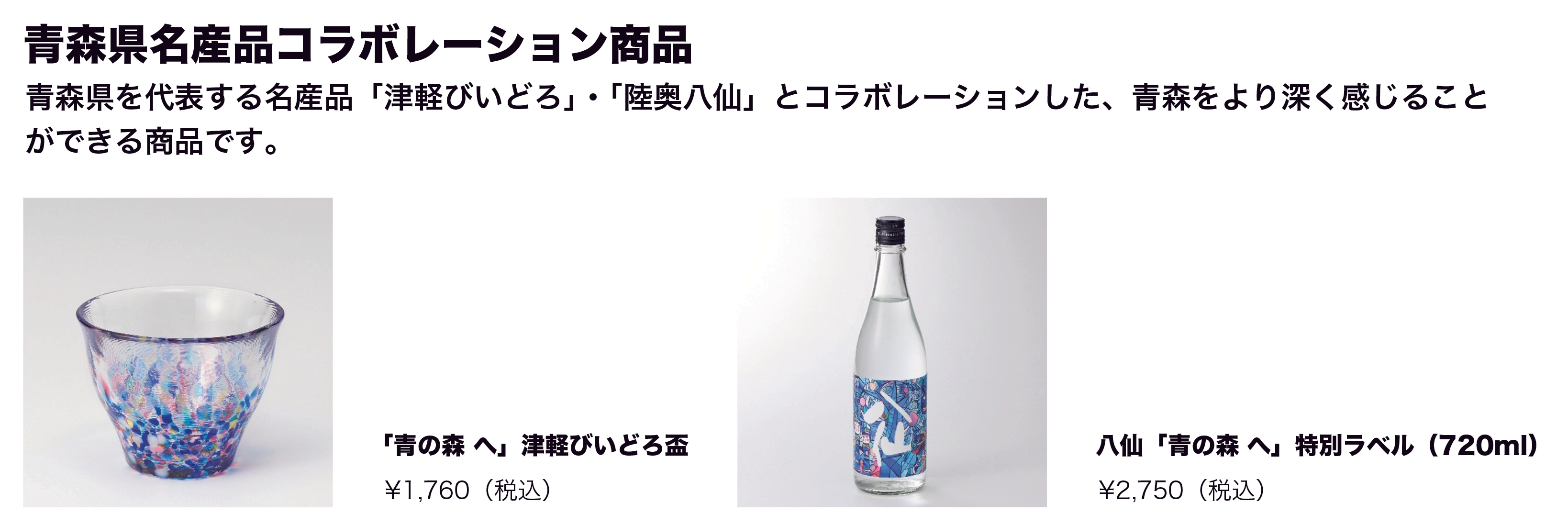 青森県の更なる文化発信・地域振興を目的に、森本氏が主宰を務める株式会社goen°(本社:東京都渋谷区、代表取締役:森本 千絵)及び青森県を代表する名産品である「津軽びいどろ」の北洋硝子株式会社(本社:青森県青森市、代表取締役:壁屋 知則)・「陸奥八仙」の八戸酒造株式会社(本社:青森県八戸市、代表取締役社長:駒井 庄三郎)と共同で開発したもので、2022年12月20日より青森県のお土産店・観光施設、CREARE ART online storeにて販売します。