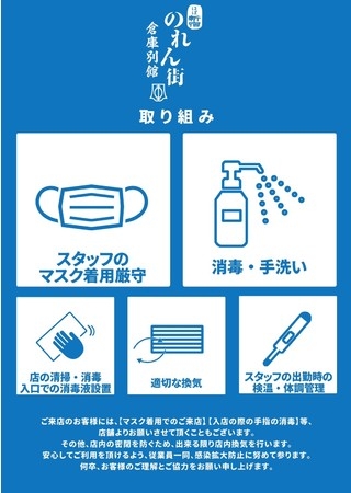 ご来店のお客様には、「マスク着用でのご来店」「入店の際の手指の消毒」等、店舗よりお願いさせて頂くこともございます。その他、店内の密閉を防ぐため、出来る限り店内換気を行います。安心してご利用頂けるよう従業員一同、感染拡大防止に努めて参ります。何卒、お客様のご理解とご協力をお願い申し上げます。