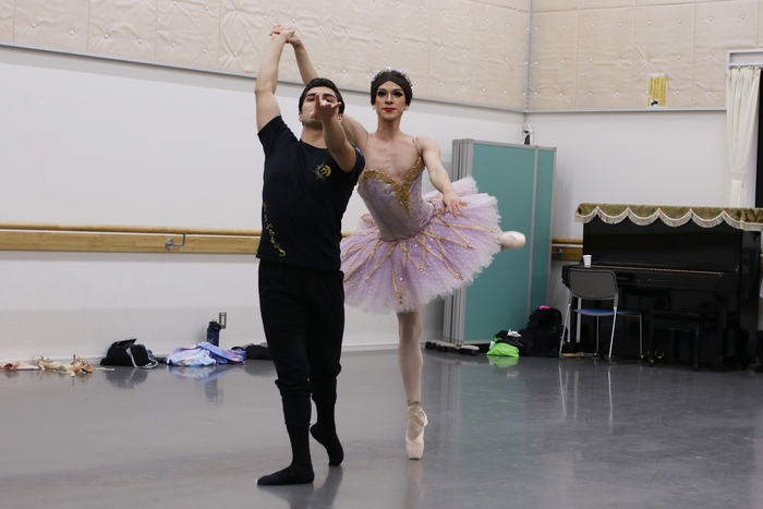 また、取材に合わせてメイクと衣装を本番仕様にしてくれたダンサーたちに、はるなは「すごく綺麗なんですよね。アイシャドウなどは舞台用のしっかりしたメイクですが、チークや口紅は意外とナチュラル。最初は女性かと思っていました。表情も素敵で勉強になります」と興味津々の様子。メイクにはニューヨークで購入したプロ用の製品を使用していると聞き、「飛行機代を出しても欲しい!」と羨ましがりつつ、「明るいリハーサル室で見ても皆さん完璧だと感じました」とプロフェッショナルの仕事を称えていた。
