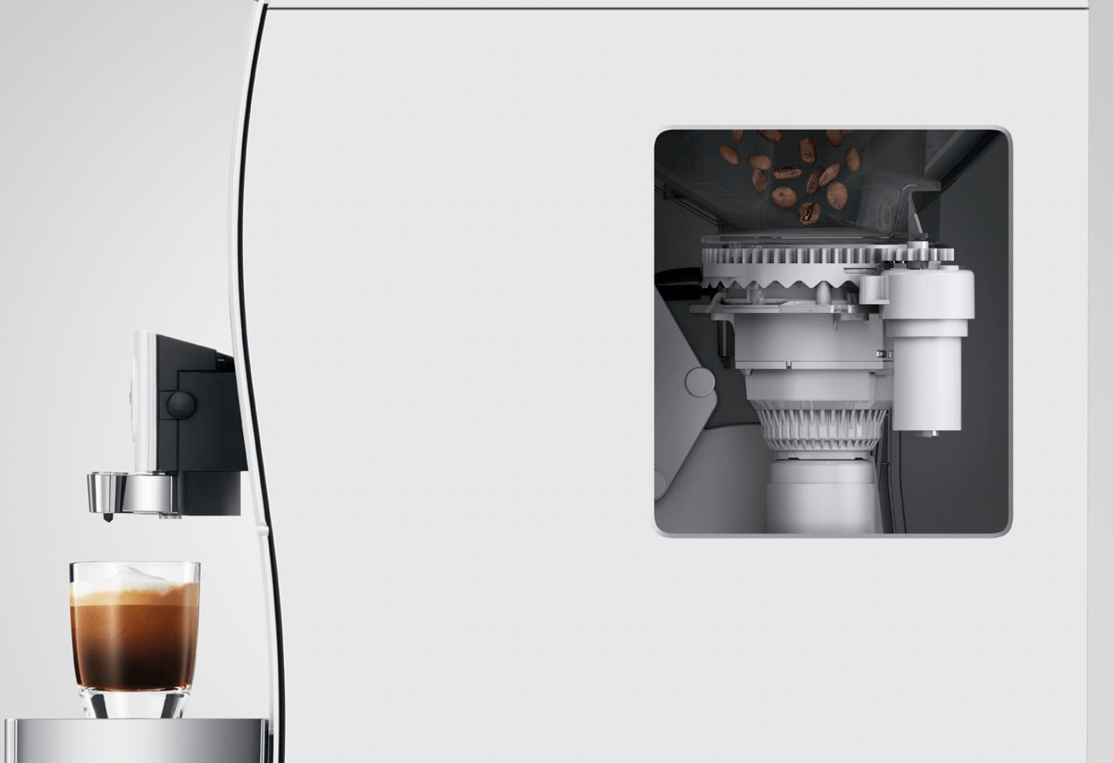 JURAはあらゆるスペシャルティコーヒーの最適な挽き目を提供するために、電子制御による高性能グラインダーP.R.Gを開発しました。メニュー毎に、プログラムされたグラインドを瞬時に調整。メニューボタンが押されるたびに、クラシックコーヒーの極細挽きから、スペシャルティやコールドブリューコーヒー用の極粗挽きまで、ホット、コールドの各メニューで最適なグラインドを実現します。