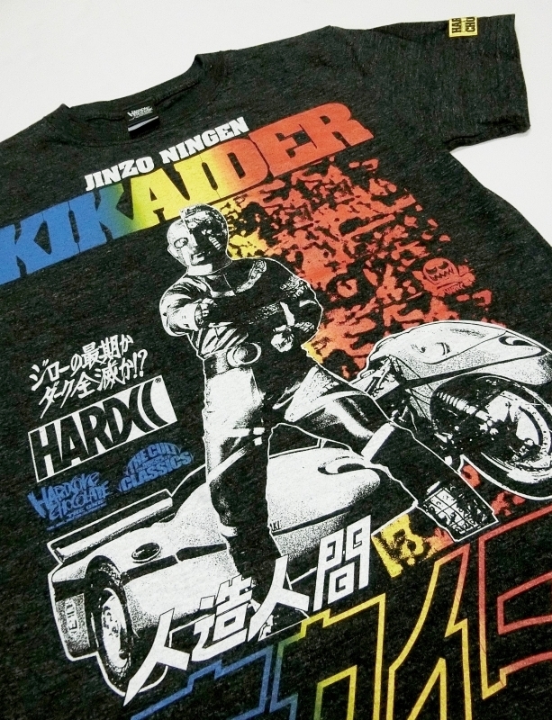 人造人間キカイダー・ハカイダーTシャツが電撃復刻! キカイダーはヘザーブラックボディ、 ハカイダーはゴールドラメプリントで再登場!