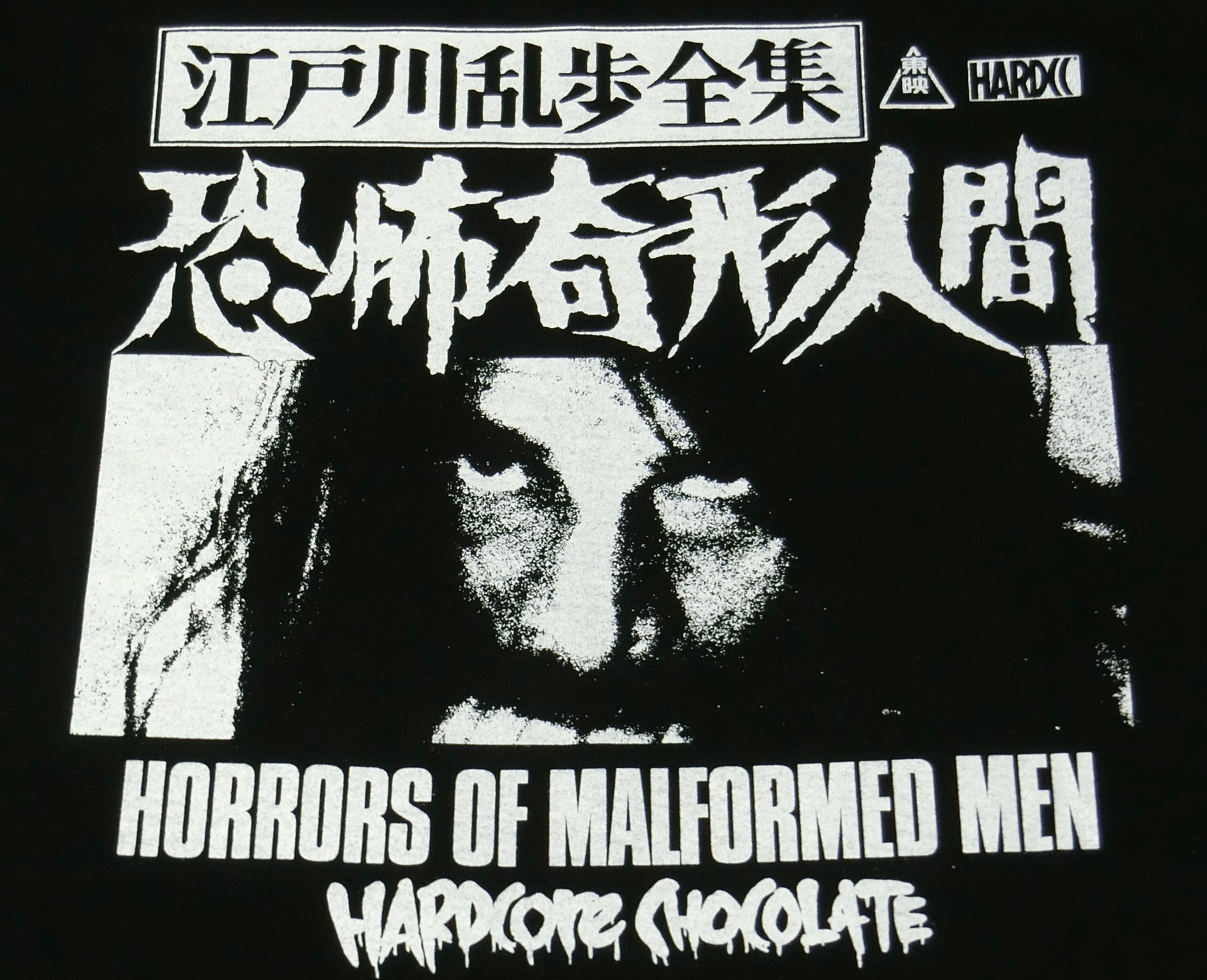 有限会社ハードコアチョコレート(本社:東京都中野区、代表取締役:宗方 雅也、以下 ハードコアチョコレート)は、「江戸川乱歩全集 恐怖奇形人間」とコラボレーションしたアパレル商品を2020年11月2日(月)に発売いたしました。