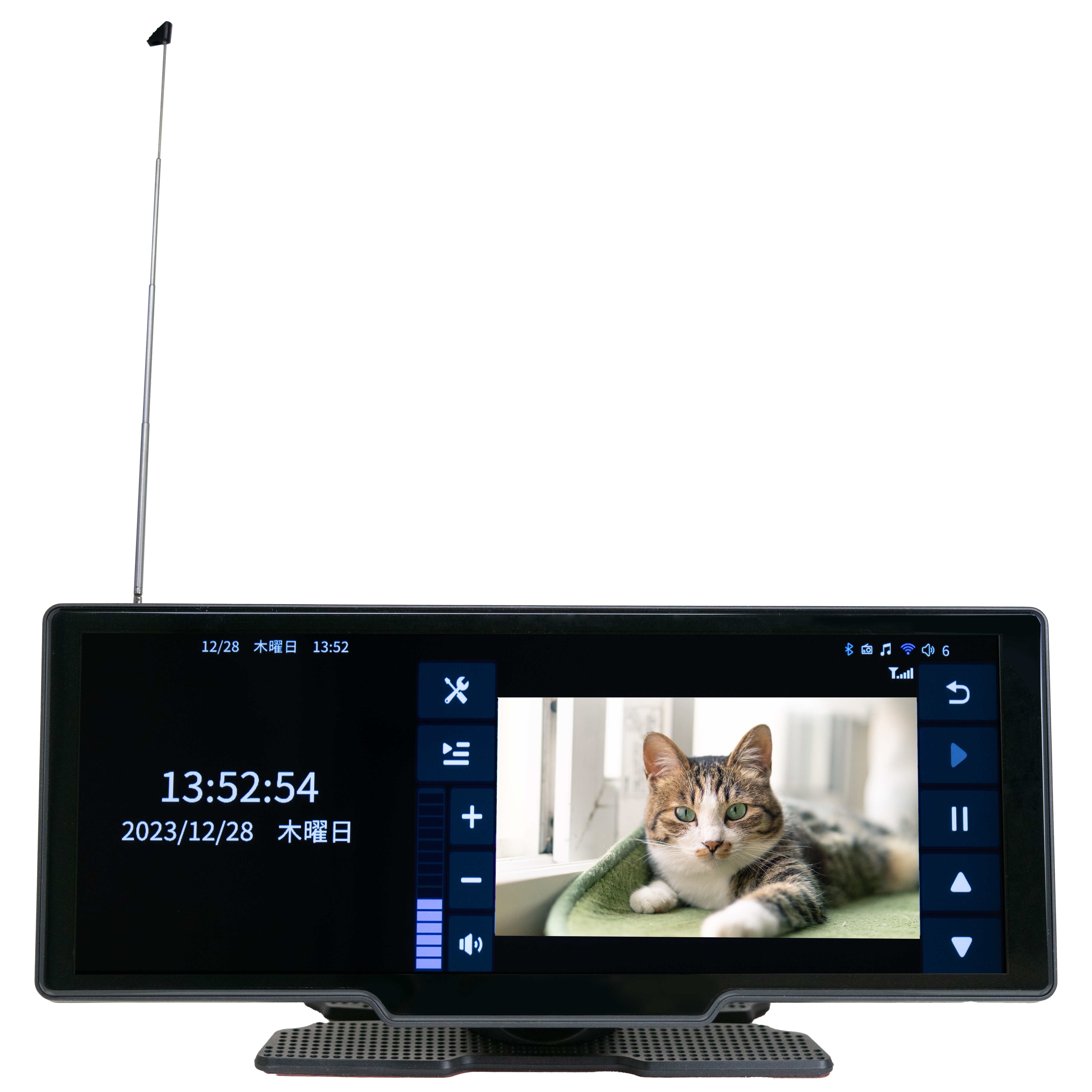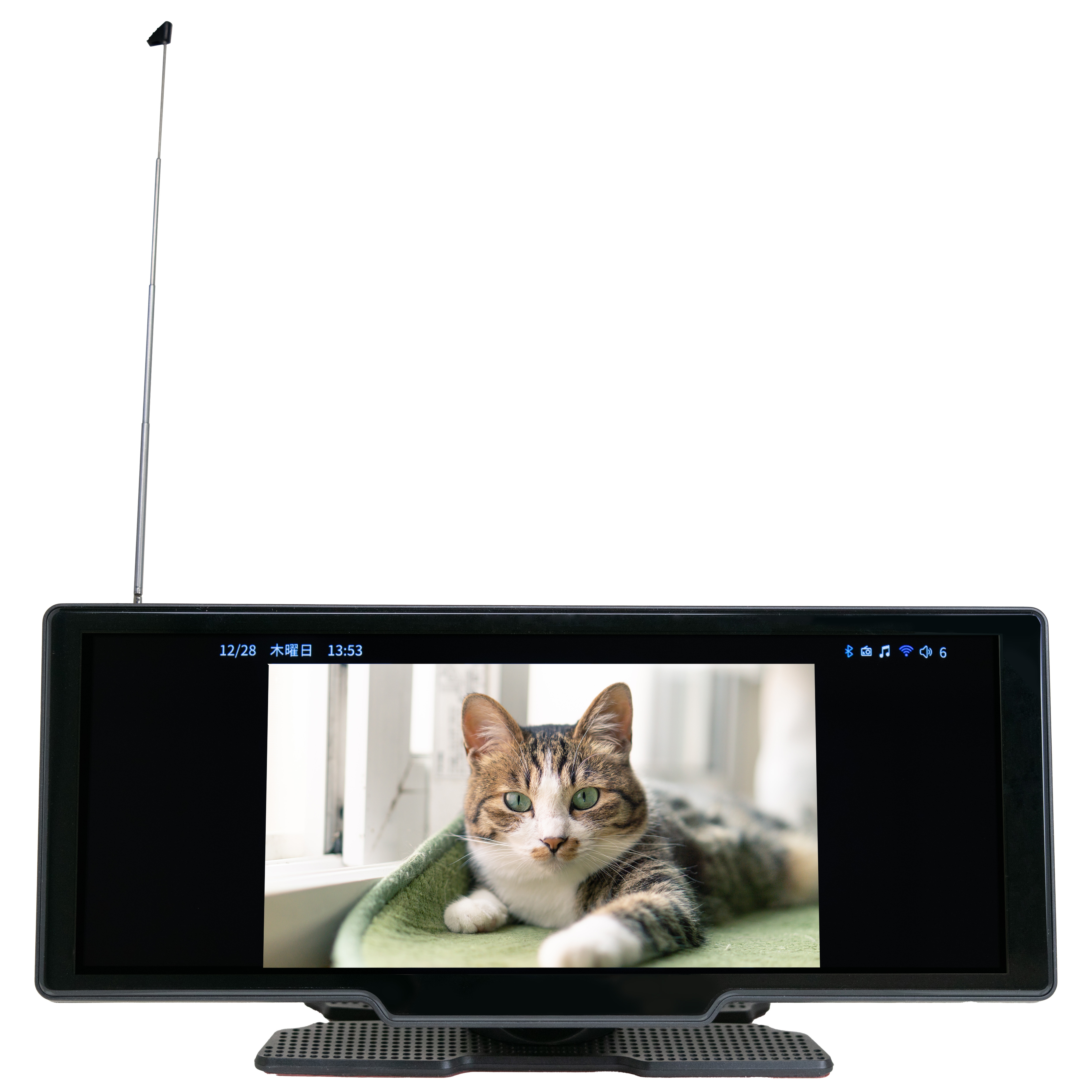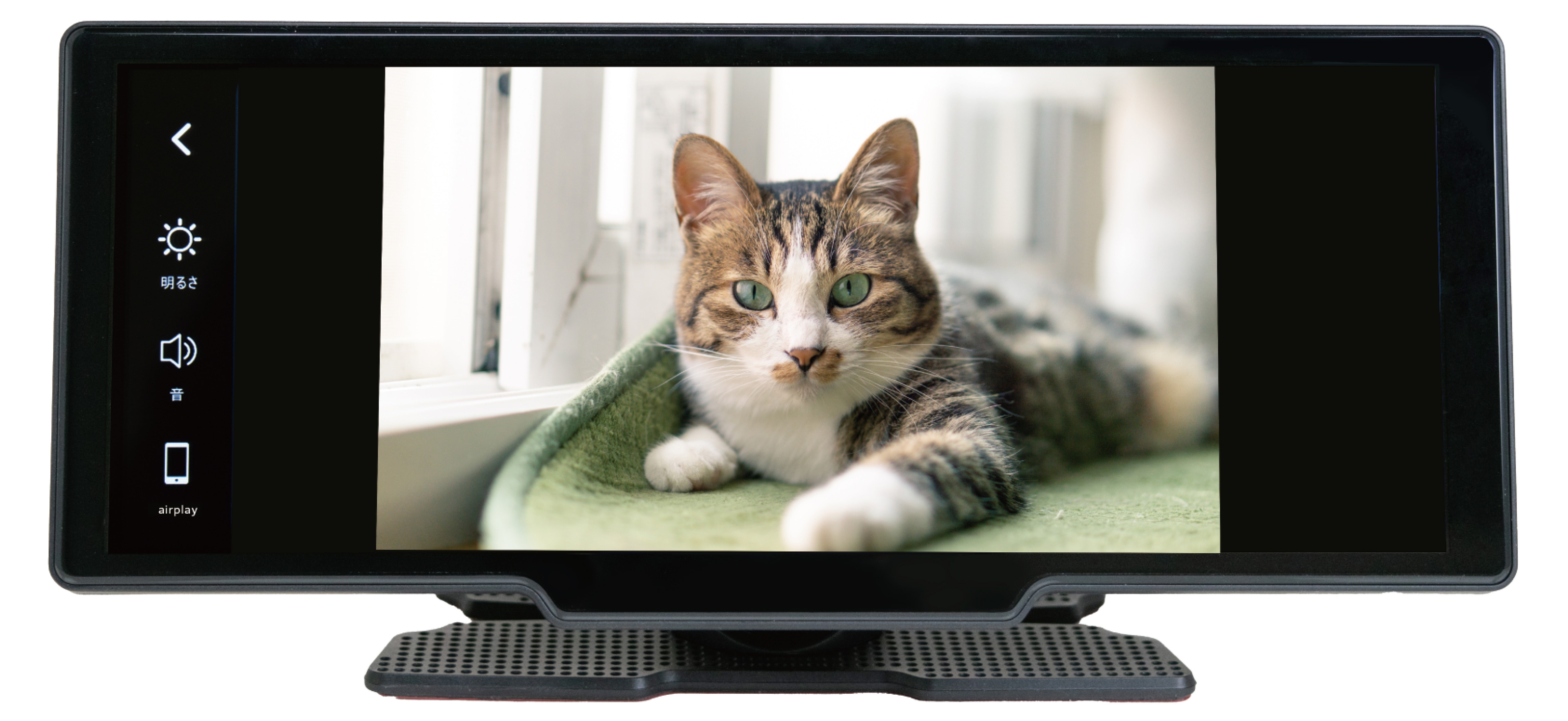 iOS(Ver.10.0以降)、Android(Ver.12.0以降)の端末機器と、ホーム画面でメニューを選択していくことで簡単にワイヤレス接続を行なえます。取付は付属している両面テープタイプの専用のスタンドをダッシュボードに設置し、シガー電源アダプターを車のシガーソケットに接続するだけで簡単に取付が可能です。視認性に優れた10.26インチのIPS液晶を搭載し、タッチスクリーンでスムーズな操作がおこなえます。