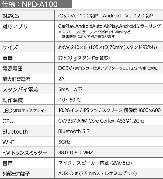 ディスプレイオーディオ「NPD-A100」
