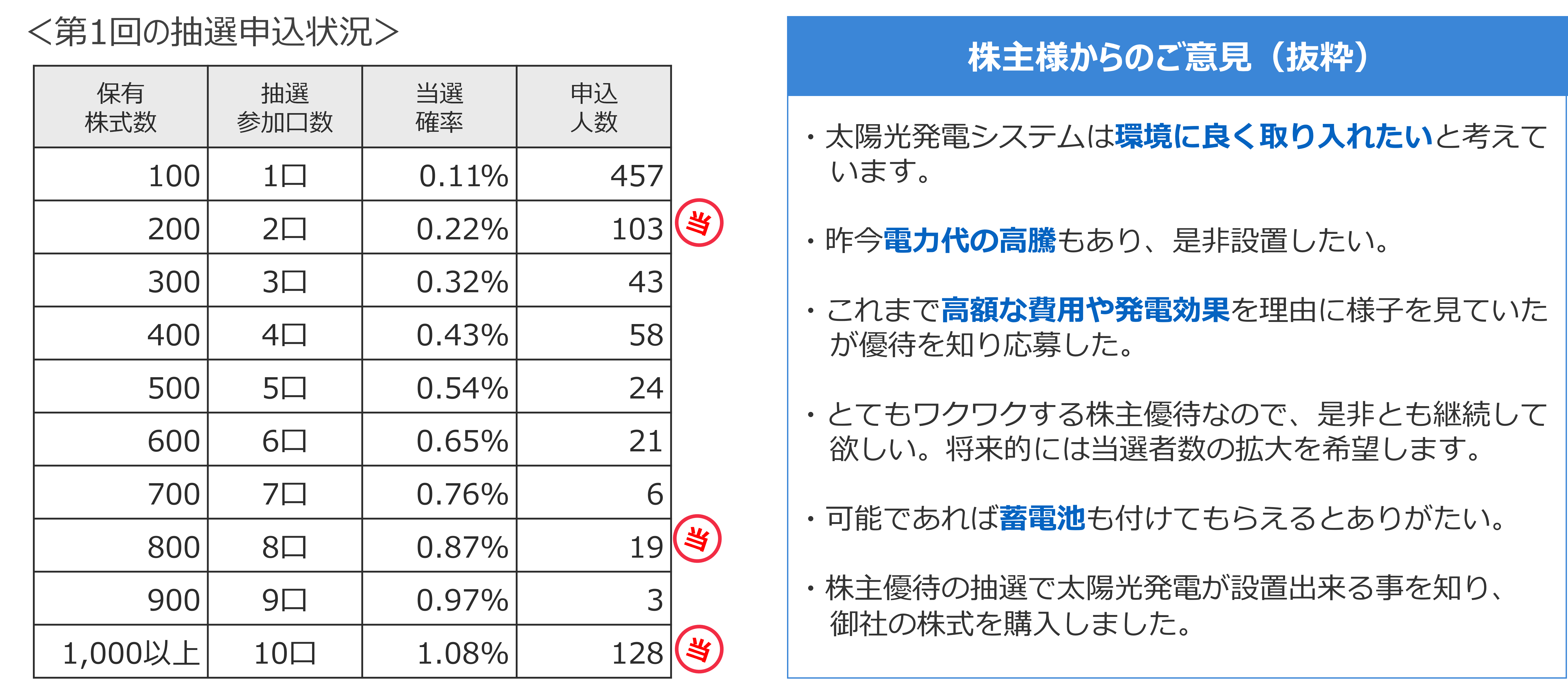 上半期抽選の結果と株主様からの声
