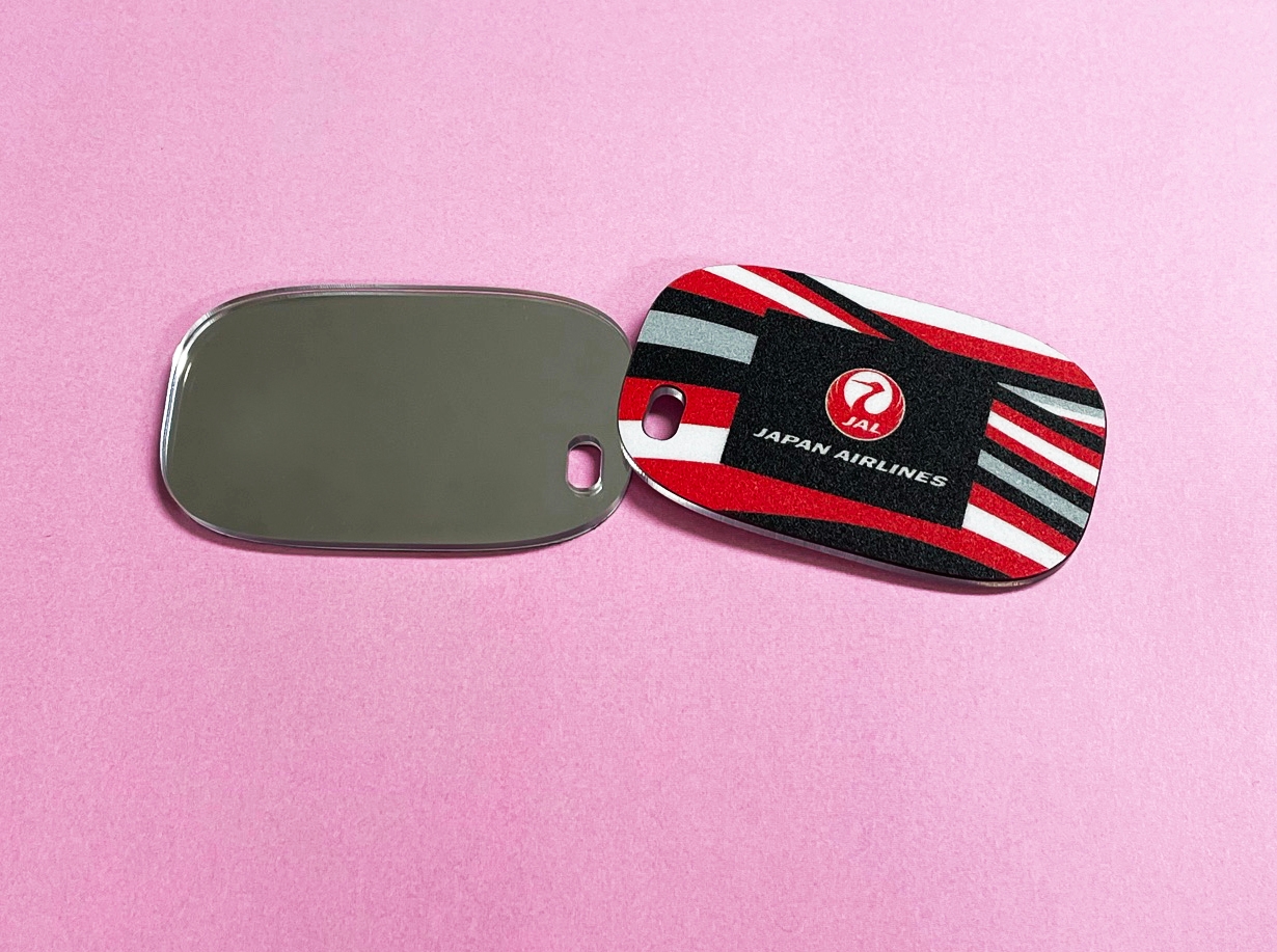 「CAミラー」はアクリル製で超軽量。割れにくく、傷つきにくい仕様。裏面のスカーフ柄やロゴも剥げずにきれいな状態で使えるよう工夫しています。また丸みのあるデザインは制服のポケットに収納時、生地を傷めないようにCAが配慮し生まれたデザインです。