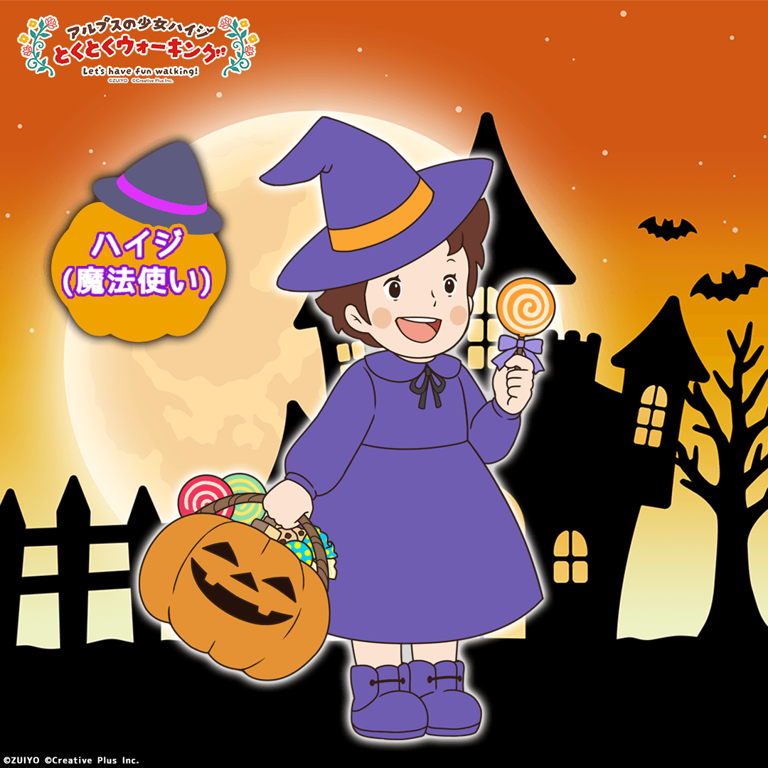株式会社エムアップホールディングス(所在地:東京都渋谷区、代表取締役:美藤 宏一郎)の連結子会社であり、キャラクターやアニメIPを活用したコンテンツ配信やコラボ実施を手掛ける株式会社Creative Plus(所在地:東京都渋谷区、代表取締役:加藤 周太郎)は、株式会社アルグラフ(所在地:東京都文京区、代表取締役:塙 智明)と協業し、株式会社サンクリエート(所在地:東京都墨田区、代表取締役:家後 敏彦)より、今年放映50周年を迎えた『アルプスの少女ハイジ(以下、「ハイジ」)』の利用許諾を受け配信中のポイ活アプリサービス『アルプスの少女ハイジ とくとくウォーキング』において、2024年10月25日(金)より「ハロウィンキャンペーン」を開催することをお知らせいたします。