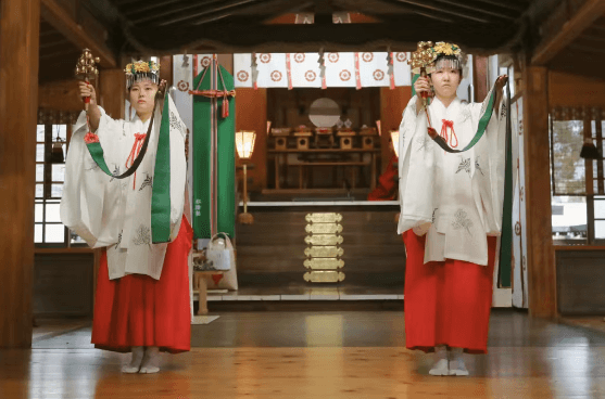 巫女装束を着付けし本殿で正式参拝後、神社境内のご希望の場所で写真撮影を行います(女性限定)。
