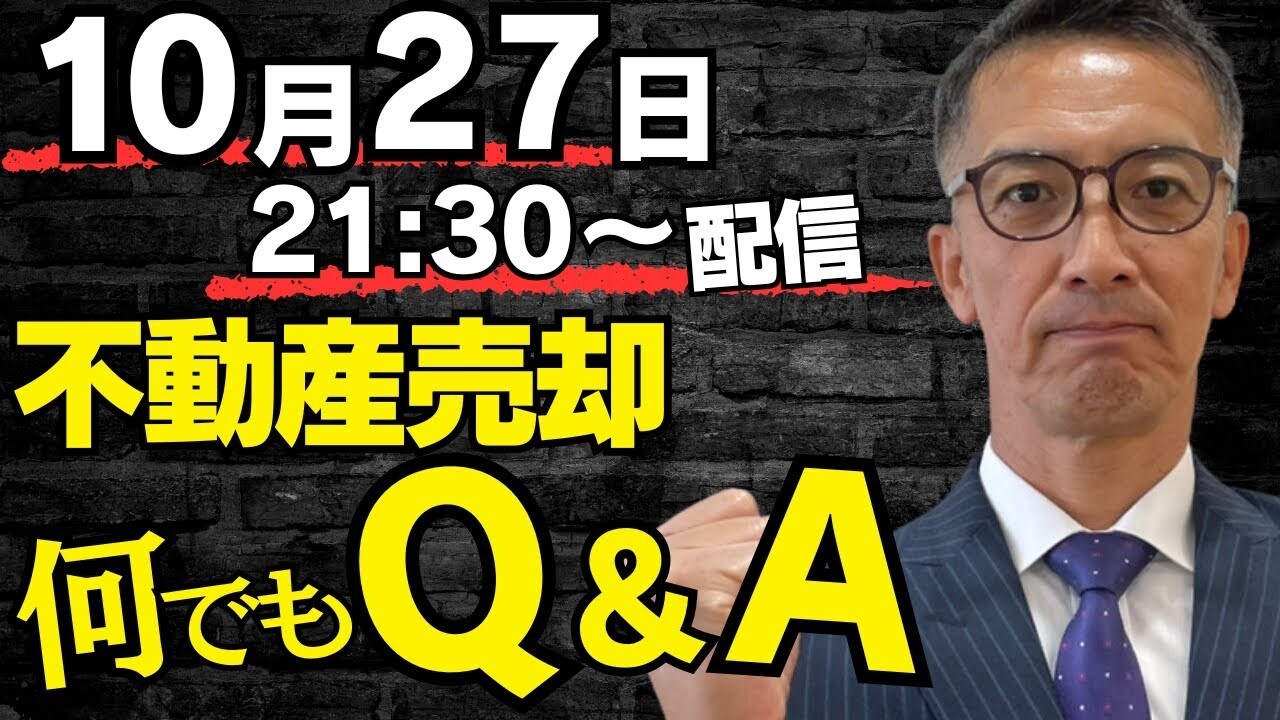 10月27日開催!不動産売却に関する疑問・質問にリアルタイムで 回答するYouTube LIVE「不動産売却Q&A」を無料開催