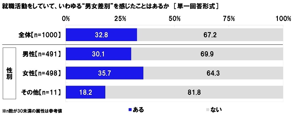 ◆「就職活動をしていて“男女差別”を感じたことがある」32.8%