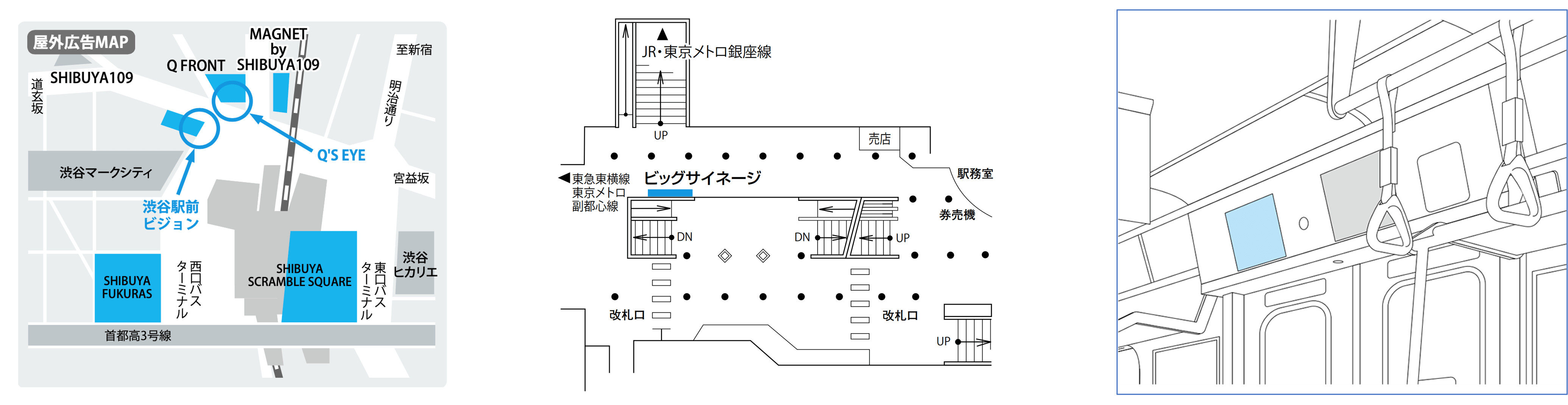 Q'S EYE、渋谷駅前ビジョン、TOQビジョン(東急電鉄所属車両)