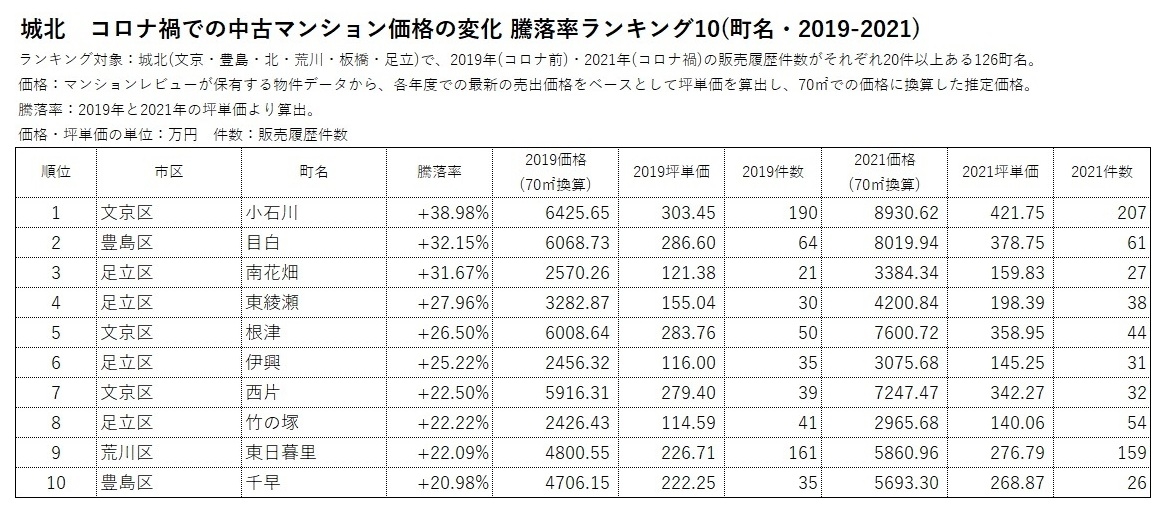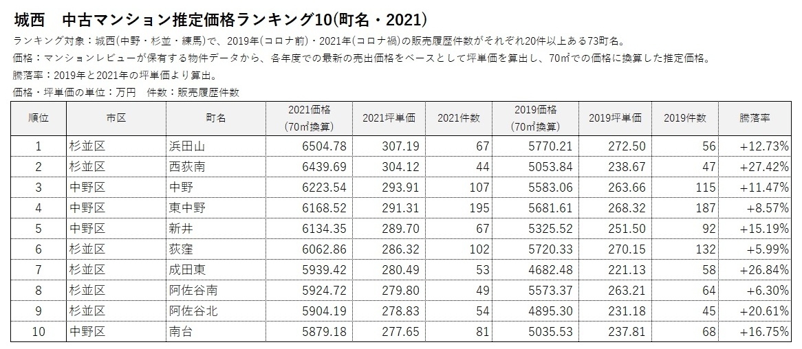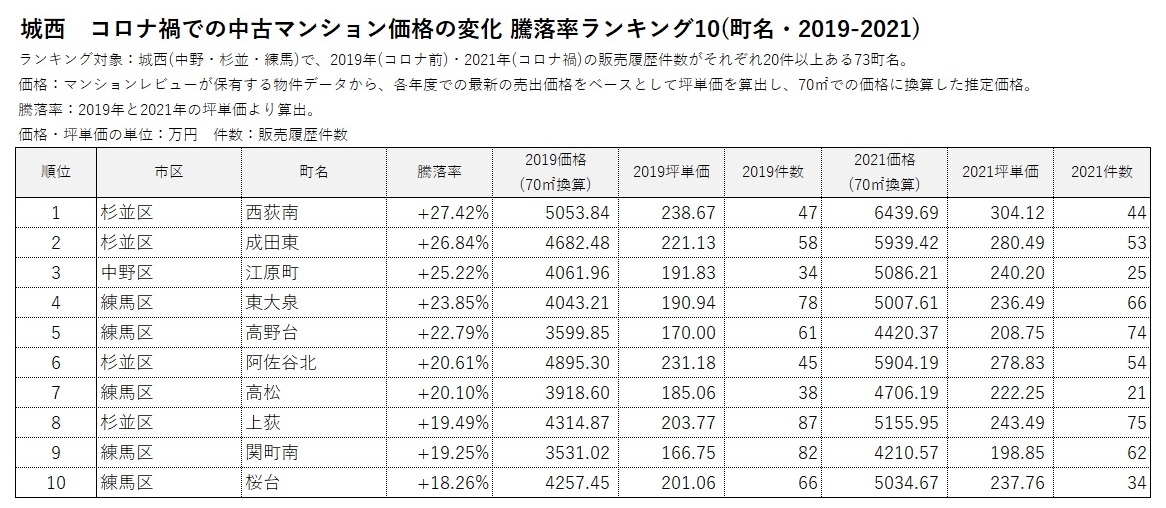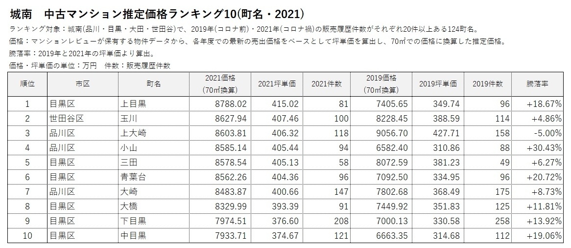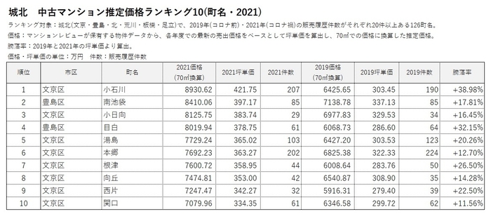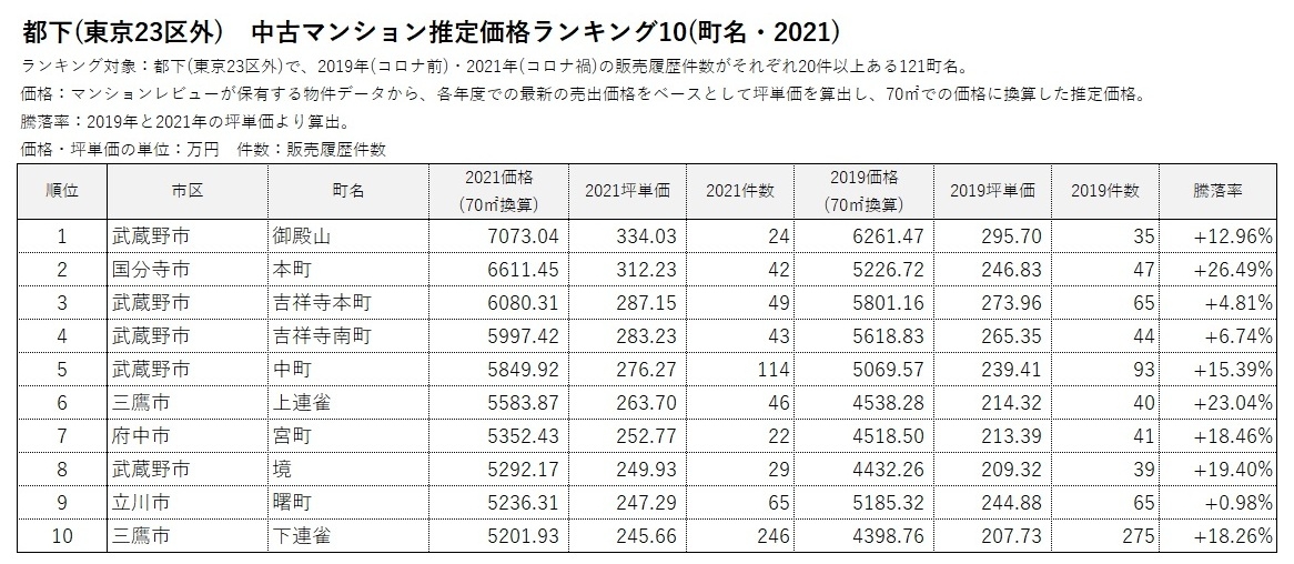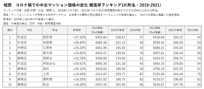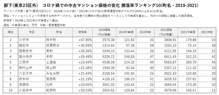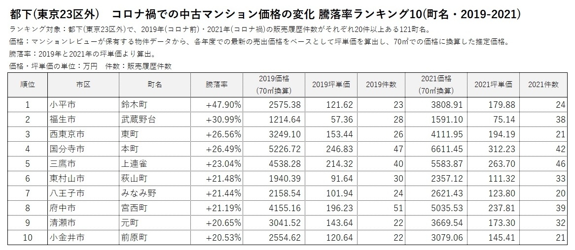 *2 2019年(コロナ前)と2021年(コロナ禍)の販売履歴がそれぞれ20件以上ある666町名を対象にランキングを作成。