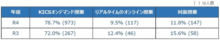 コロナ禍により、メディア授業が一般的に導入されて3年目を迎えた今期においても、「KICSオンデマンド」へのニーズが、「リアルタイムのオンライン授業」や、「対面授業」よりも高いという事実は、単なる珍しさといった一過性のものでなく、学生のニーズに合った実用性のある受講形態であることを示しています。