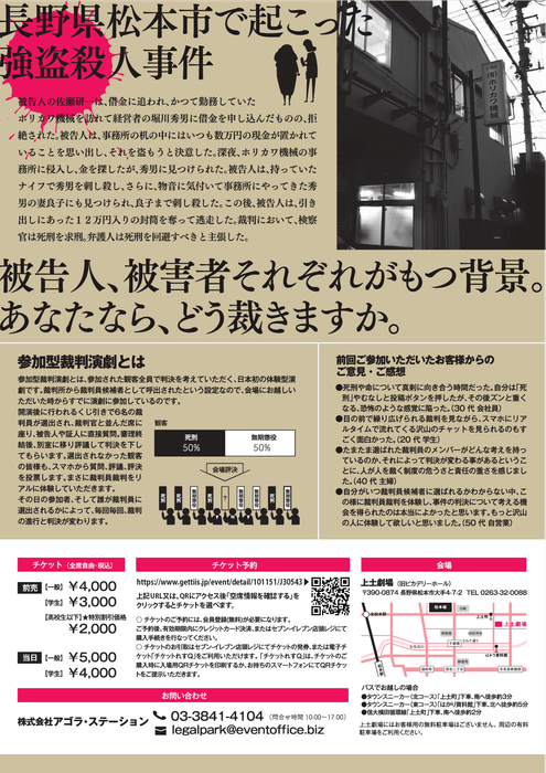 松本市民で作る!参加型裁判演劇「極刑」松本公演チケット発売中! 裁判員裁判をリアルに体験する体験型演劇