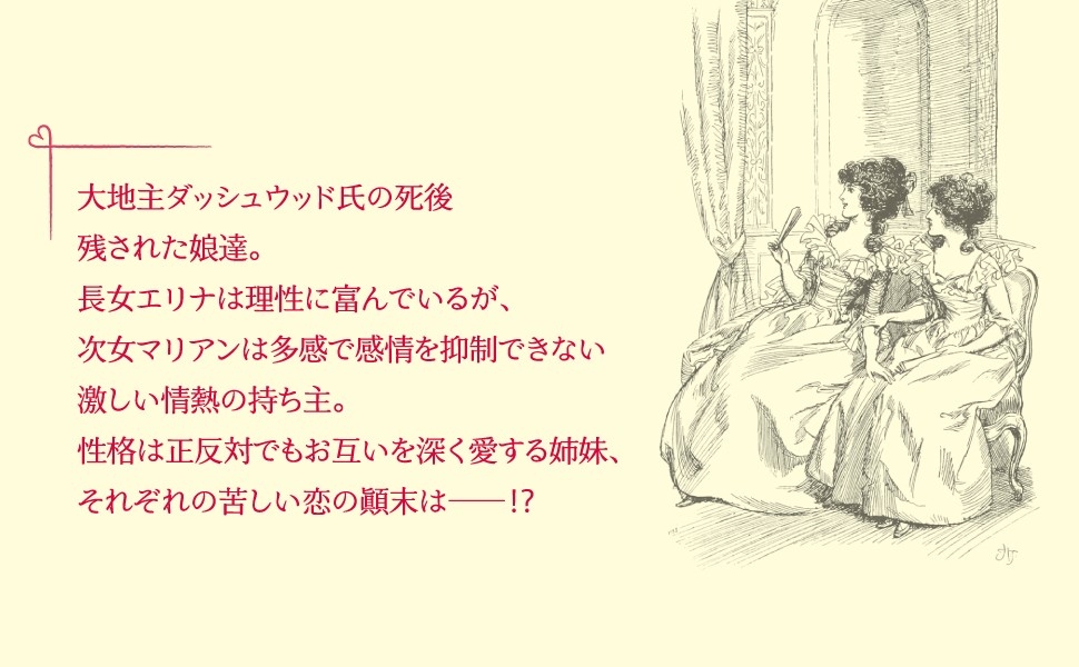 性格が対照的な姉妹、冷静で理性的なエリナと感情的で情熱的なマリアンが、それぞれの恋愛や試練を通じて成長していく物語。父の死後、一家は財産を奪われ、厳しい生活を余儀なくされます。エリナは恋人エドワードの秘密に悩み、マリアンは魅力的だが無責任なウィロビーに翻弄されます。しかし、姉妹は困難を乗り越え、真実の愛や家庭の安定を見つけることで、理性と感情の調和の大切さを知るのです。